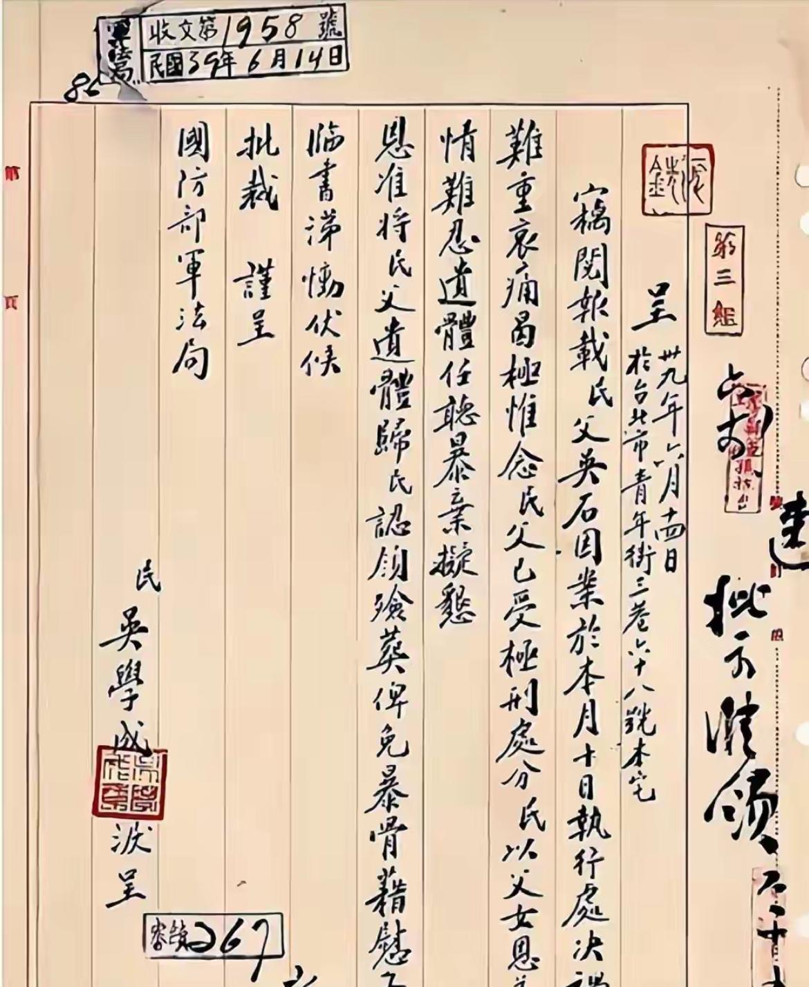 吴石牺牲后,16岁女儿吴学成没哭没闹,她干了件事,人们由衷敬佩 1950年吴石将军牺牲后,16岁的吴学成在家庭崩塌、流落街头的绝境中,没哭没闹扛起重任——她写信申领父亲遗体,独自推木板车穿越台北街巷送父火化,将骨灰暂存寺庙并立下“带爸爸回家”的誓言。此后44年,她靠缝补、擦鞋养活母亲和弟弟,19岁为供弟弟读书嫁与老兵,38岁考进台湾大学改变命运,更顶着禁令将父亲骨灰以“陶瓷样品”名义转运美国保存。1994年,她终于实现承诺,将父母骨灰合葬于北京西山福田公墓,用一生坚守完成了对父亲的孝心与誓言,这份隐忍、坚韧与执着让世人由衷敬佩。 归葬仪式上,吴学成身着素衣,将父母骨灰轻轻放入墓穴,四十四年的风雨与坚守,终在这一刻化作释然的泪水。她缓缓蹲下身,抚摸着墓碑上父亲“吴石”二字,轻声说:“爸爸,我们回家了。” 此后多年,吴学成始终低调生活,却从未忘记传承父亲的精神。她将父亲的遗物与生平资料悉心整理,无偿捐赠给博物馆,只为让更多人了解那段隐秘而悲壮的历史。晚年时,有人问她一生最骄傲的事是什么,她笑着回答:“不是考上台大,也不是养活家人,而是守住了对父亲的承诺。” 她的故事在两岸悄然流传,人们敬佩的不仅是她的坚韧,更是那份跨越时空的孝心与忠诚。吴学成用一生证明,真正的勇气,是在绝境中不放弃希望;真正的孝顺,是用漫长岁月践行一句誓言。她如一株在石缝中顽强生长的野草,终将平凡的生命活成了传奇。