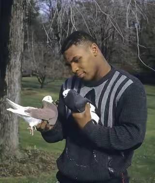 泰森原来如此喜欢鸽子,这是以前不知道的事情,当年在全场上如此凶猛强悍的他,原来也有一颗柔软悲悯的心,就凭这一点,更让他加分,更让人喜欢他,不管一个人有多么的强大,不管一个人有多么的弱小,就能看出他心态的,就是看他如何对待小动物,这一点非常关键!