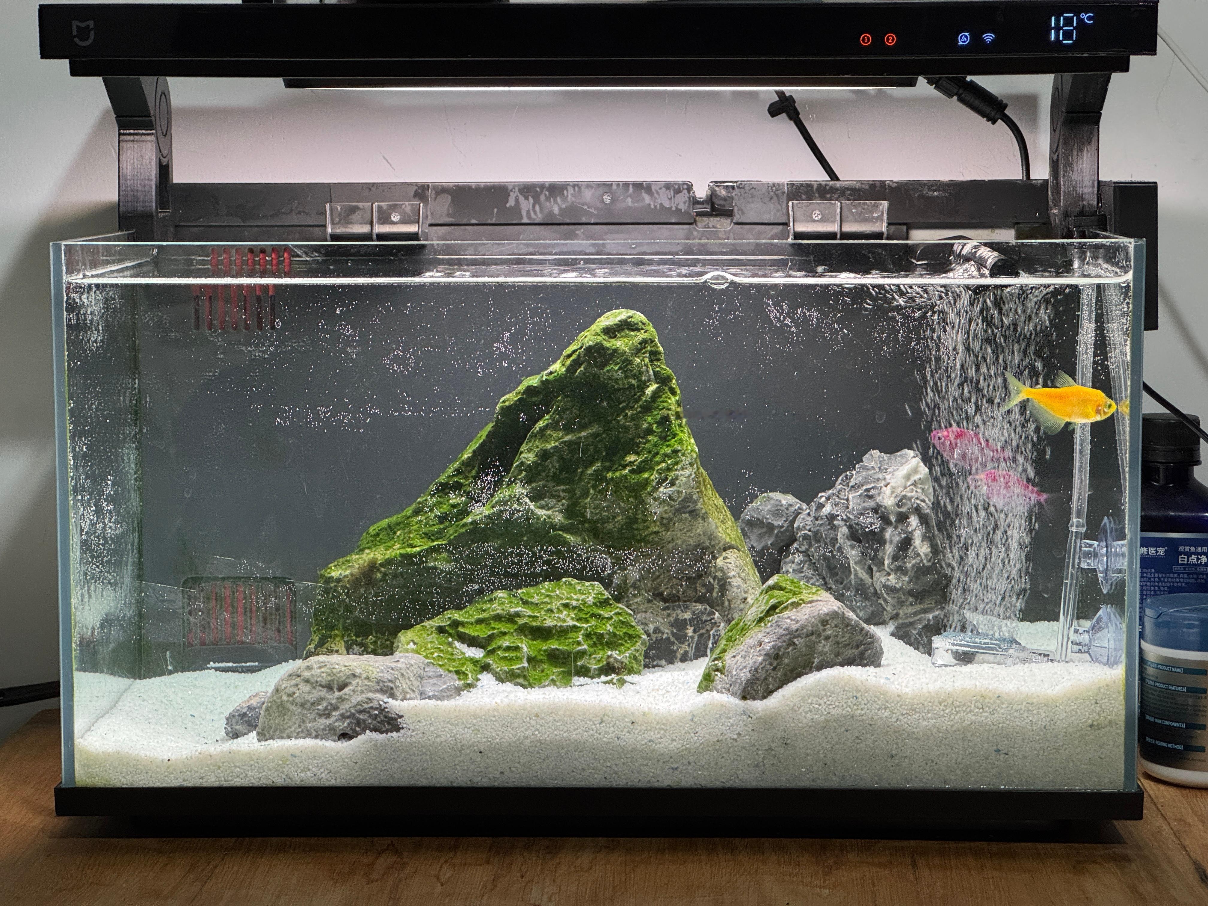 给鱼缸来一套大保养硝化菌和滤芯都换了加了个增氧泵 我这个翠绿的山养的是不是还行?