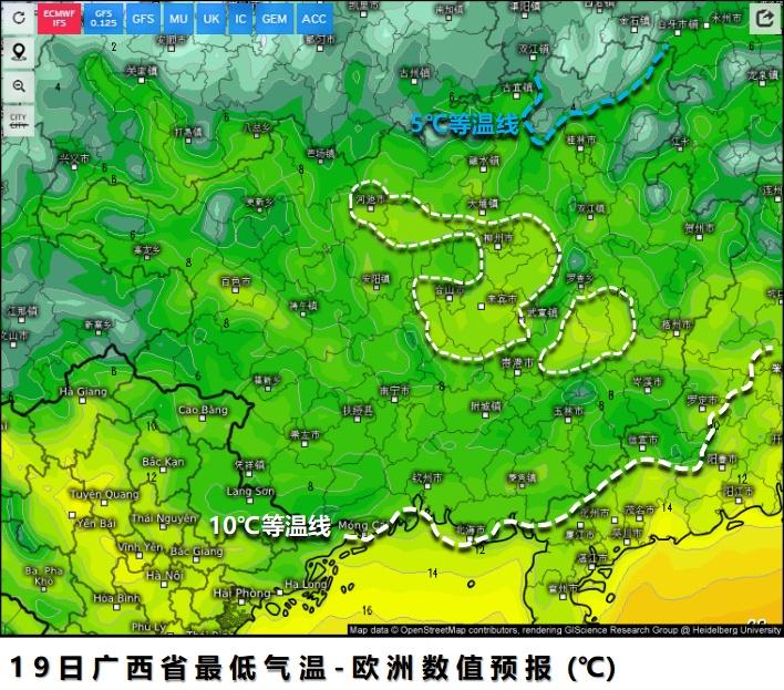 【降温降温大降温,冷空气展望】根据AI模式反应来看,中旬后期将有强冷活跃,将会南下给我国带来一场自北向南的明显降温。 18号华南地区就开始受到本轮冷空气影响,目前看广东广西多地气温跌至10℃或以下,但沿海地区(例如湛江潮汕地区这种沿海)和城市热岛显著的地区(珠三角)的最低气温将保持在10℃以上。广东北部山区和广西中北部可跌至5℃上下,海南岛局地高海拔地区也将跌至15~10℃,沿海地区等地将维持在18℃上下。 本轮降温还有南支槽的参与,湿冷不可避免。根据数值模拟,广西中南部大部地区和广东西部地区会有零星小雨出现,体感温度可能进一步走低,其余地区以阴天为主。 本轮降温过程较为剧烈,趁着这几天阳光充足把厚衣服拿出来晒一晒做好御寒工作~