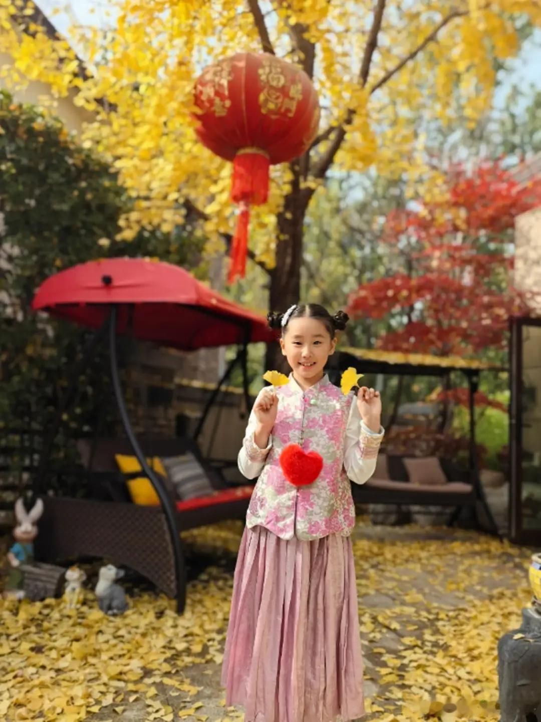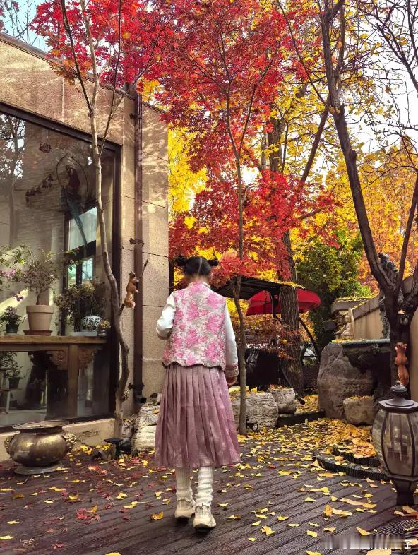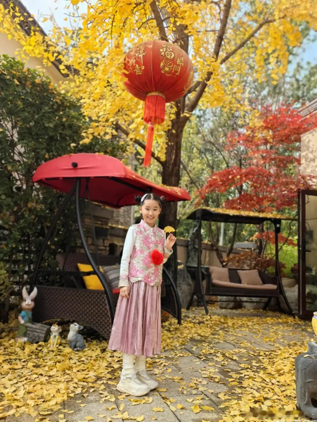 赵文卓妻女北京别墅赏秋,院里满是落叶,仨子女只有小女儿留身边