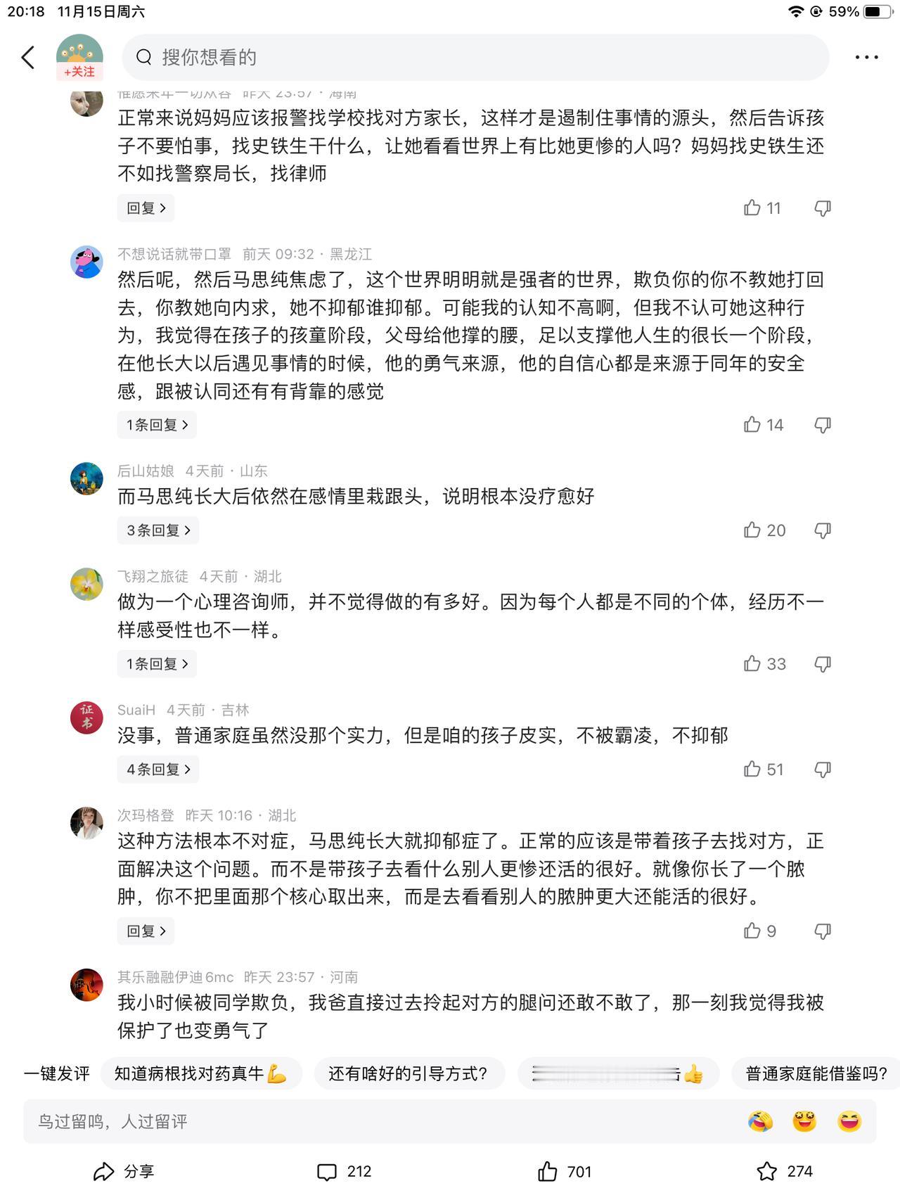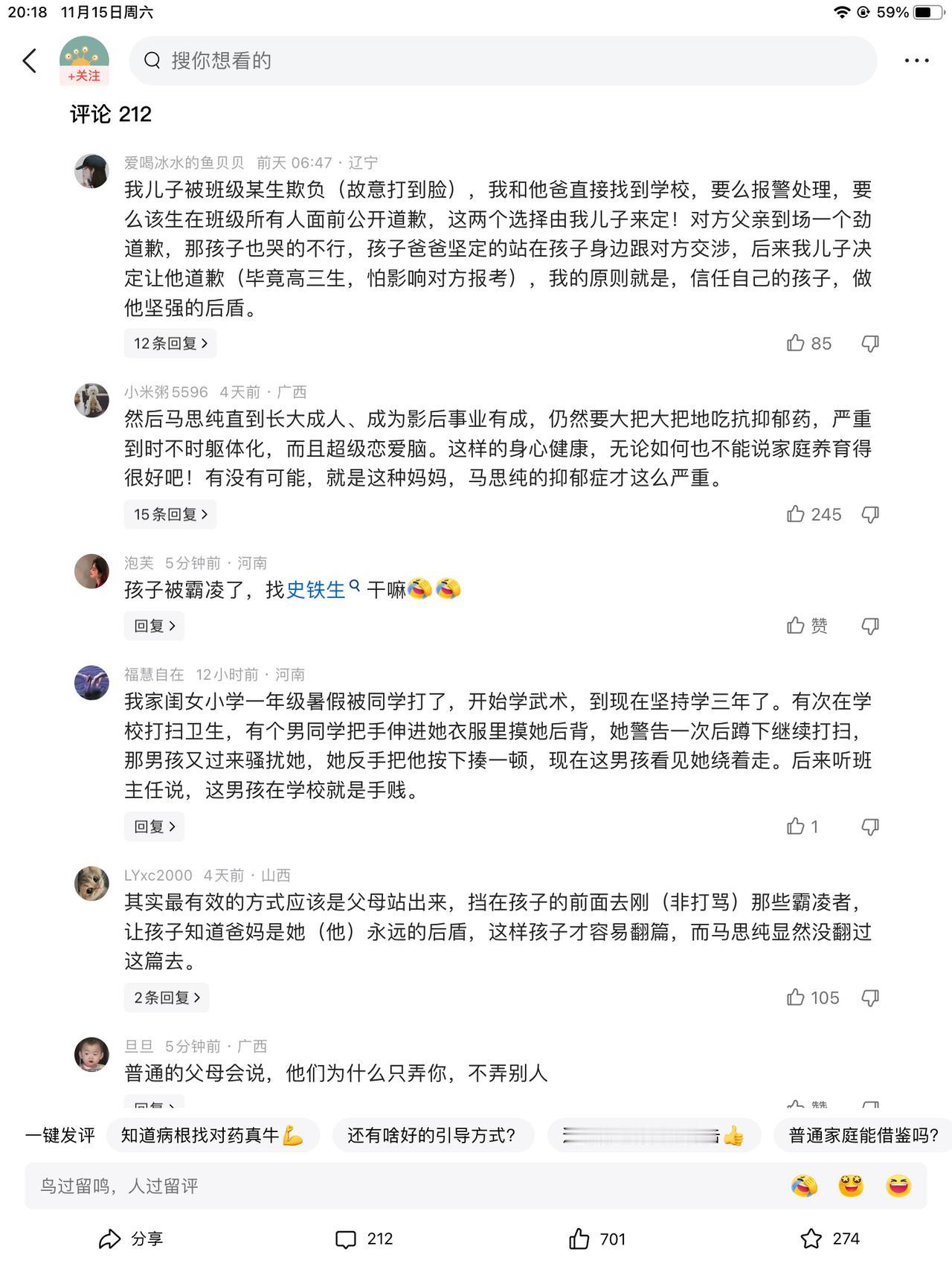 刷到马思纯她妈的热搜,尬到不行! 女儿14岁被霸凌,自卑到快要碎掉的时候,她不是去学校吵,她直接领着孩子,去敲了史铁生的门。 史铁生哪一年离世的?马思纯也三十多了吧?捋时间线倒是没毛病。他们竟然认识。很多人夸她妈妈做的好。我笑了, 不找专业人士,不去为孩子出头。找个作家话聊。看马思纯的眼神儿,满眼的爱溢出屏幕。这孩子,不会爱爱自己。跟小时候的经历有关。马思纯明显没有翻篇,长大后抑郁了。 她用了很久才出来。这孩子,有点傻憨的气质。长的又是真的好。想不幸福都难。