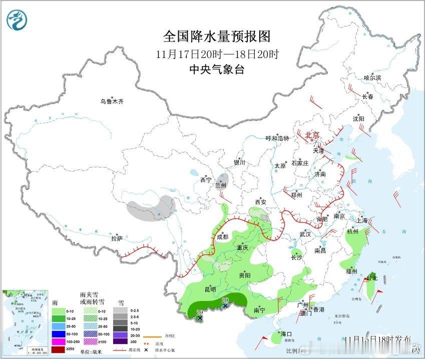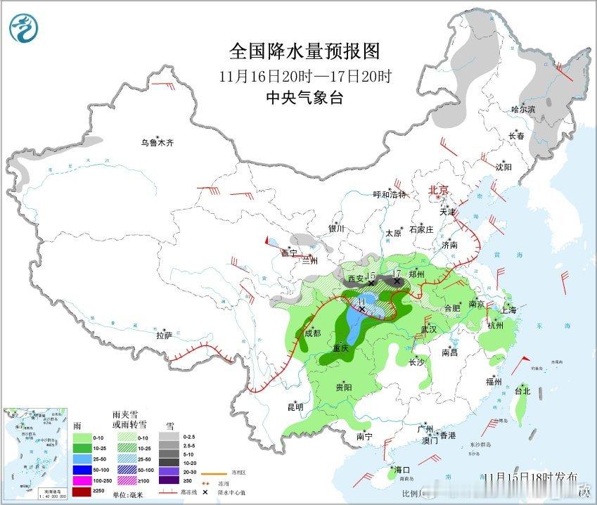 【降水】昨晚到今天,我国降水不多。未来2天我国降水有所增多,对应低空700百帕偏南暖湿气流输送水汽,同时寒潮南下,冷暖空气在四川重庆陕西湖北等地交汇导致降水。此外内蒙古东北部和黑龙江西北部有高空冷涡+地面气旋,也会出现明显降雪。预计15日夜间至17日,内蒙古东北部、黑龙江西北部、甘肃南部、川西高原北部、陕西南部、重庆北部、河南西部、湖北西北部等地部分地区有大雪,秦岭及大巴山局地有暴雪或大暴雪(10~25毫米),新增积雪深度6~12厘米,局地可超过15厘米。18日降水在冷空气东北风压制下,向贵州广西云南一带收缩。19日-21日降水主要在西南地区,我国大部地区晴朗少雨。
