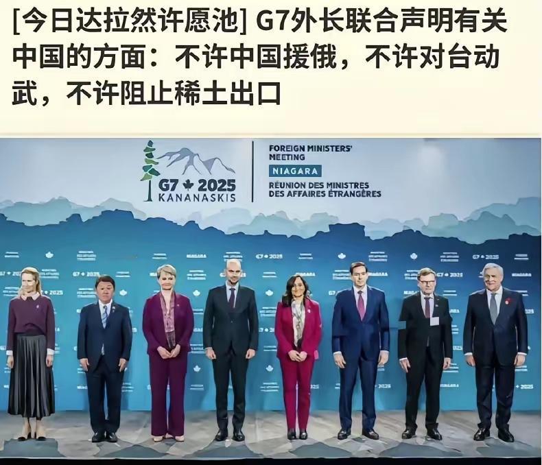 这次G7外长发表联合声明“三个不许”,我只想说:你们算老几? 不许中国援俄?中国根本没这么做,也没必要这么做。这纯属无中生有,故意抹黑。你们自己军援不断,倒反过来指责别人,这脸也太大了。 不许对台动武?台湾是中国领土,内政问题轮不到外人指手画脚。你们要是真有本事,就直接派兵来,别只会耍嘴皮子。 不许阻止稀土出口?稀土是中国的资源,卖不卖、怎么卖,完全看我们心情。美国之前搞制裁,最后还不是得乖乖求我们?你们G7又能奈我何? 没有实力的叫嚣,就是放屁。国际政治讲的是拳头,不是道理。你们再这么嚣张下去,迟早会自食恶果。 你觉得G7接下来还会搞出什么幺蛾子?欢迎在评论区聊聊。
