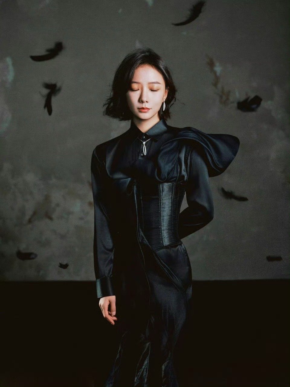 陈都灵在红毯上的优雅姿态让人心动,她穿着一袭黑色纱裙,仿佛一只展翅欲飞的黑天鹅,