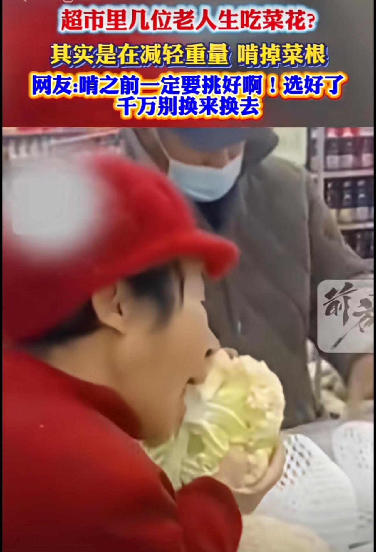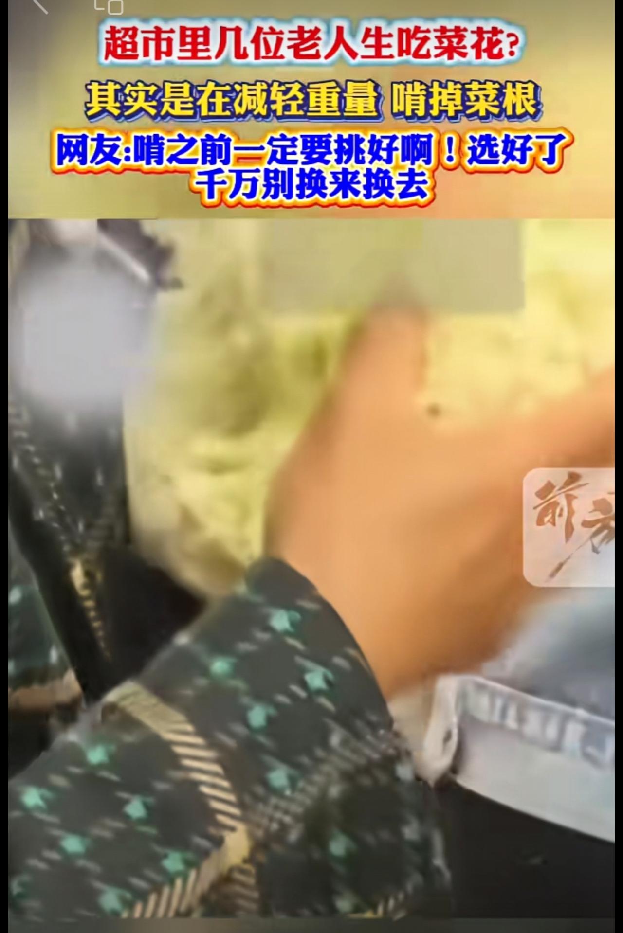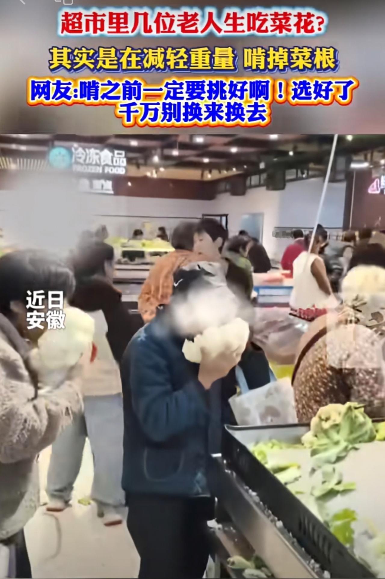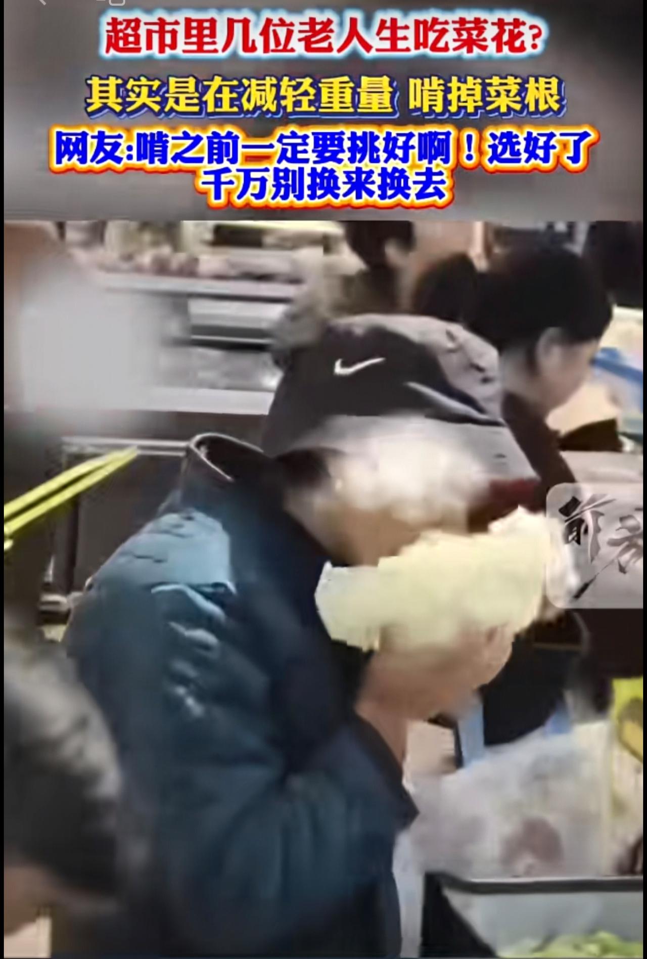 超市里几位老人生吃菜花?其实是在减轻重量啃掉菜根,网友:啃之前一定要挑好啊!选好了千万别换来换去。(潮汐新闻)