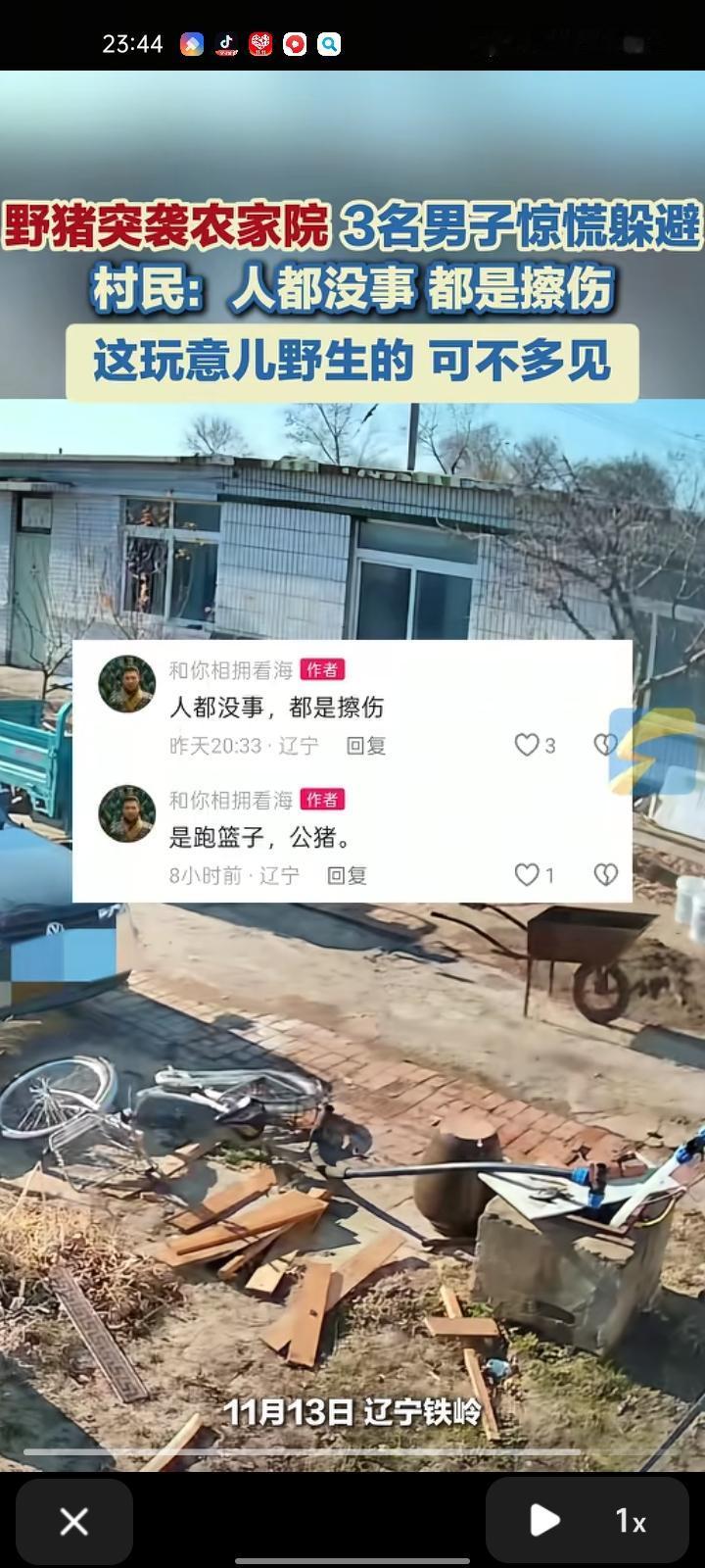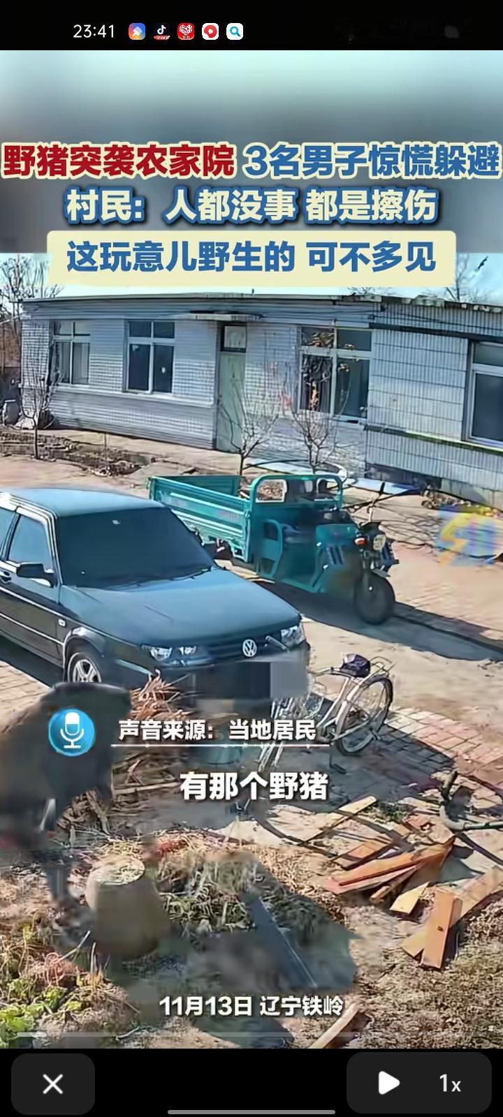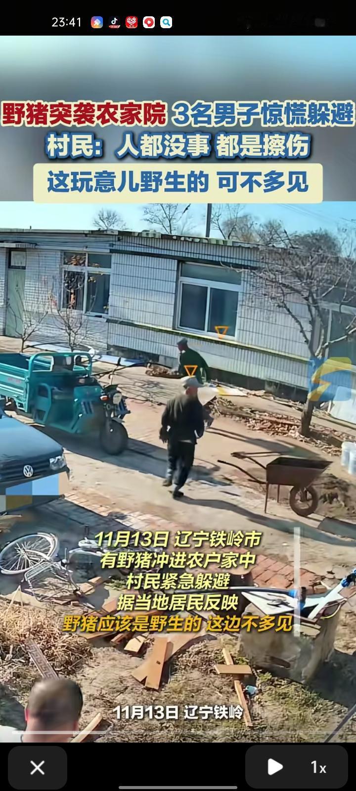 11月13日,铁岭市昌图县。有野猪冲进农户家中,男子上一秒还在优先看热闹,下一秒被野猪追着跑,所幸人都没事,都是擦伤。据当地居民反映,野猪应该是野生的,这边不多见。这件事情提醒各位,野猪具有攻击性,遇到时应保持距离,及时报警,避免直接接触。