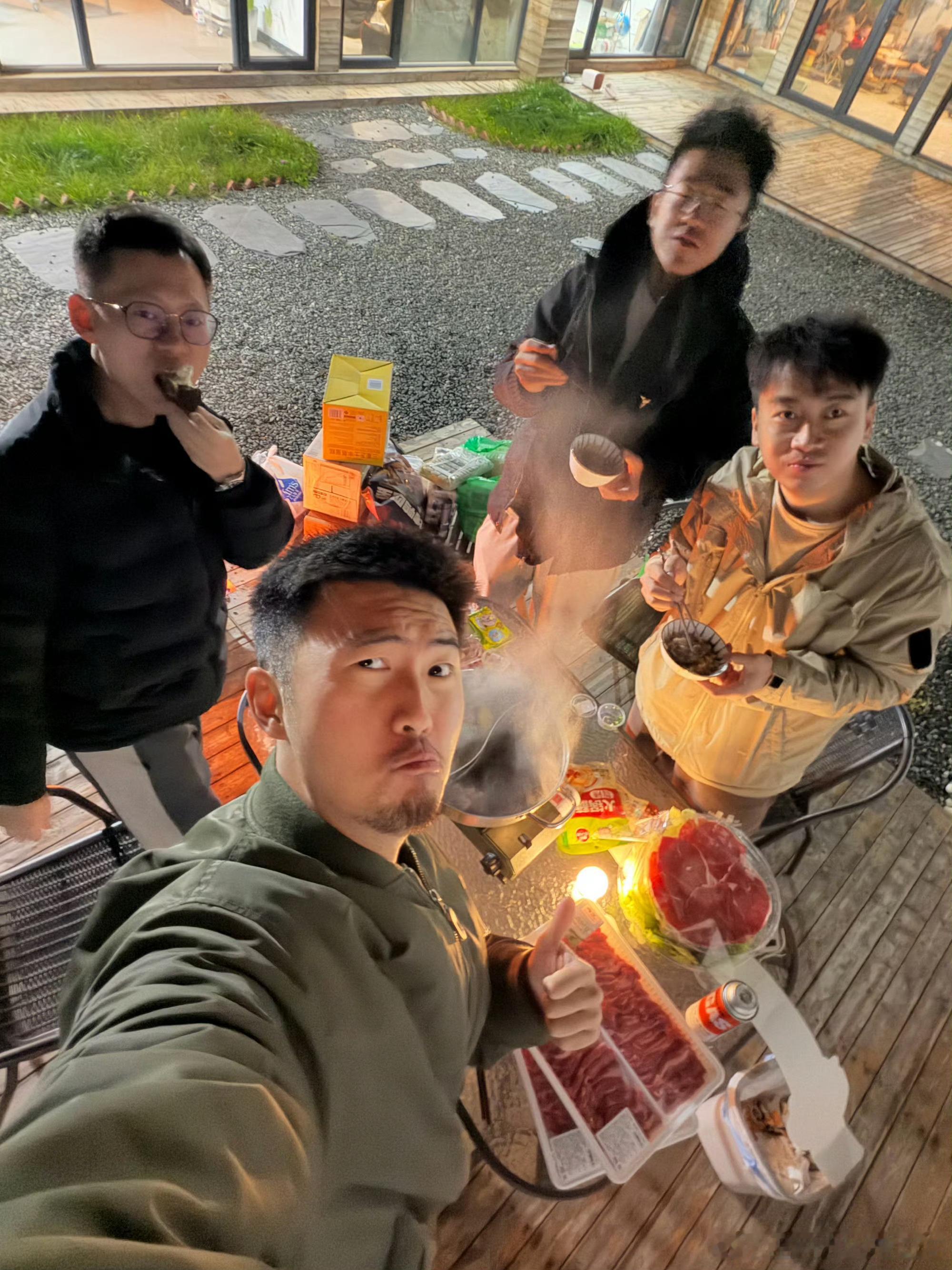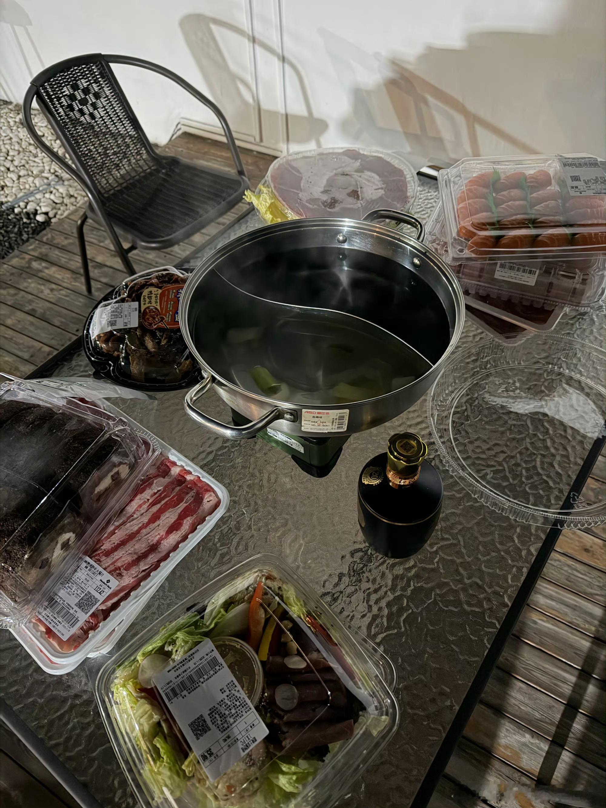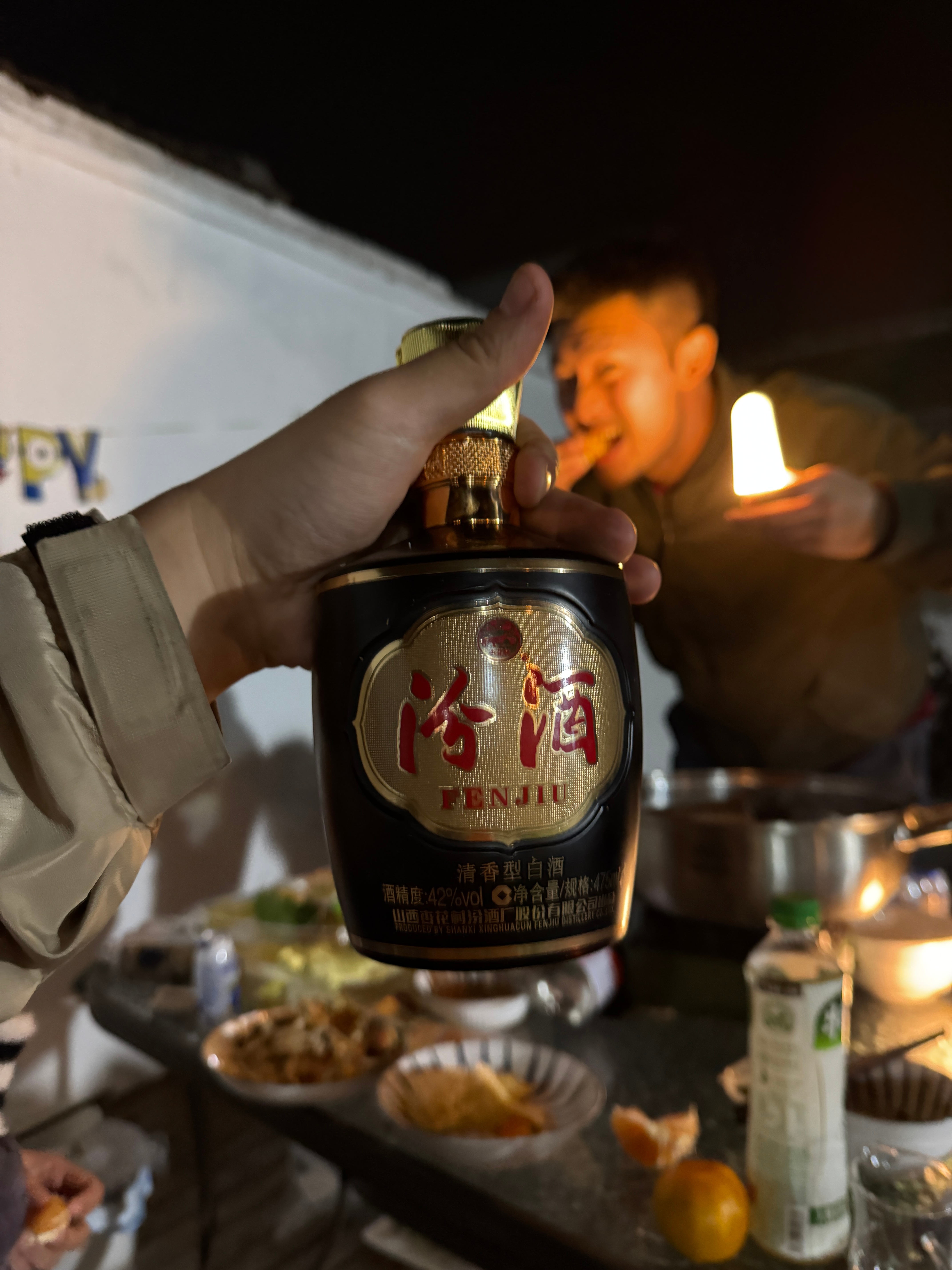 今晚临时约个火锅局现在户外5度哥仨非得在院子里吃那就篝火整起来呗蒸了点上海崇明的螃蟹,大满黄,很鲜老李 拿来了汾酒20年,一瓶干没了,这酒是真柔呀,好喝又没醉,美了