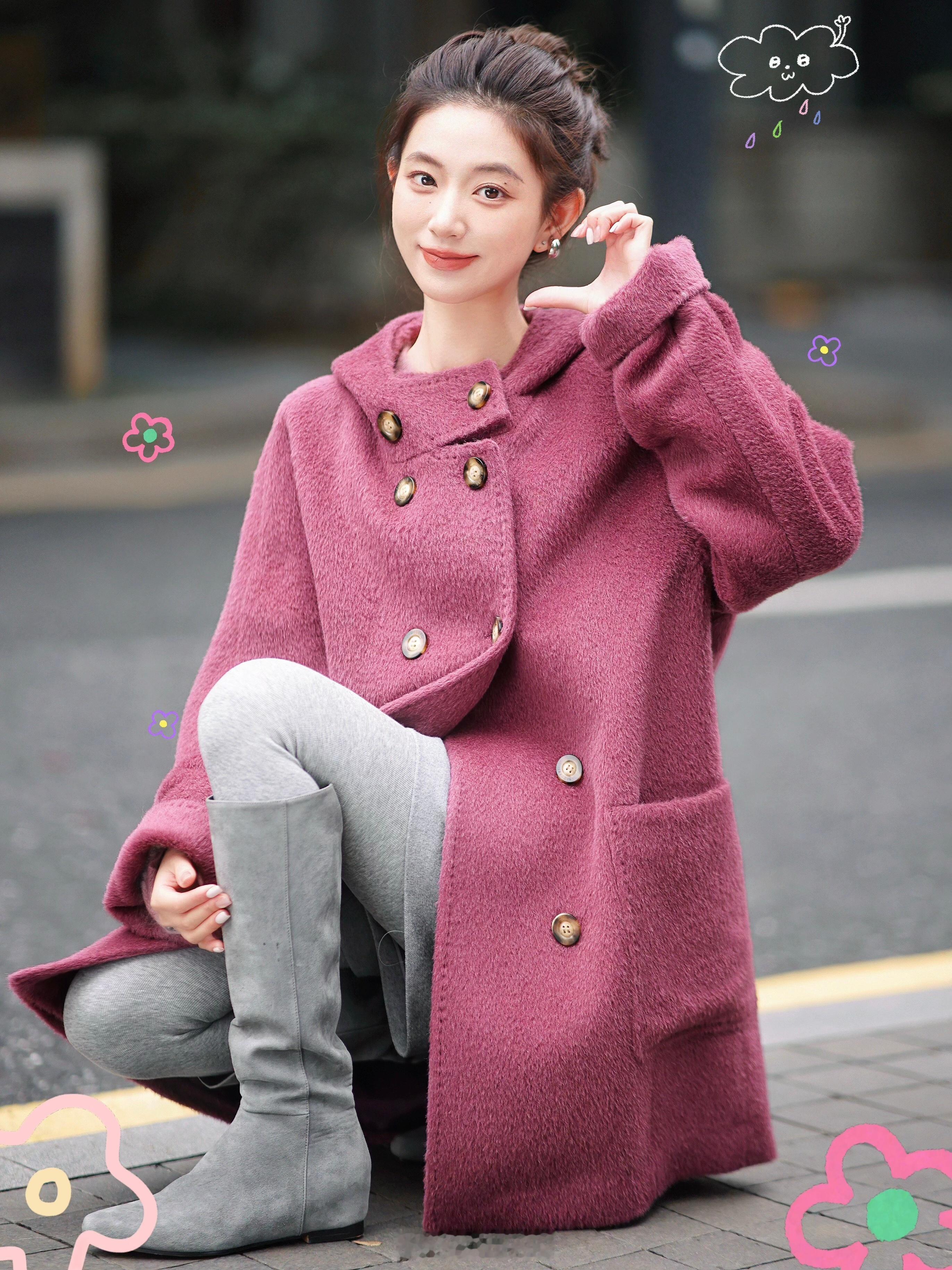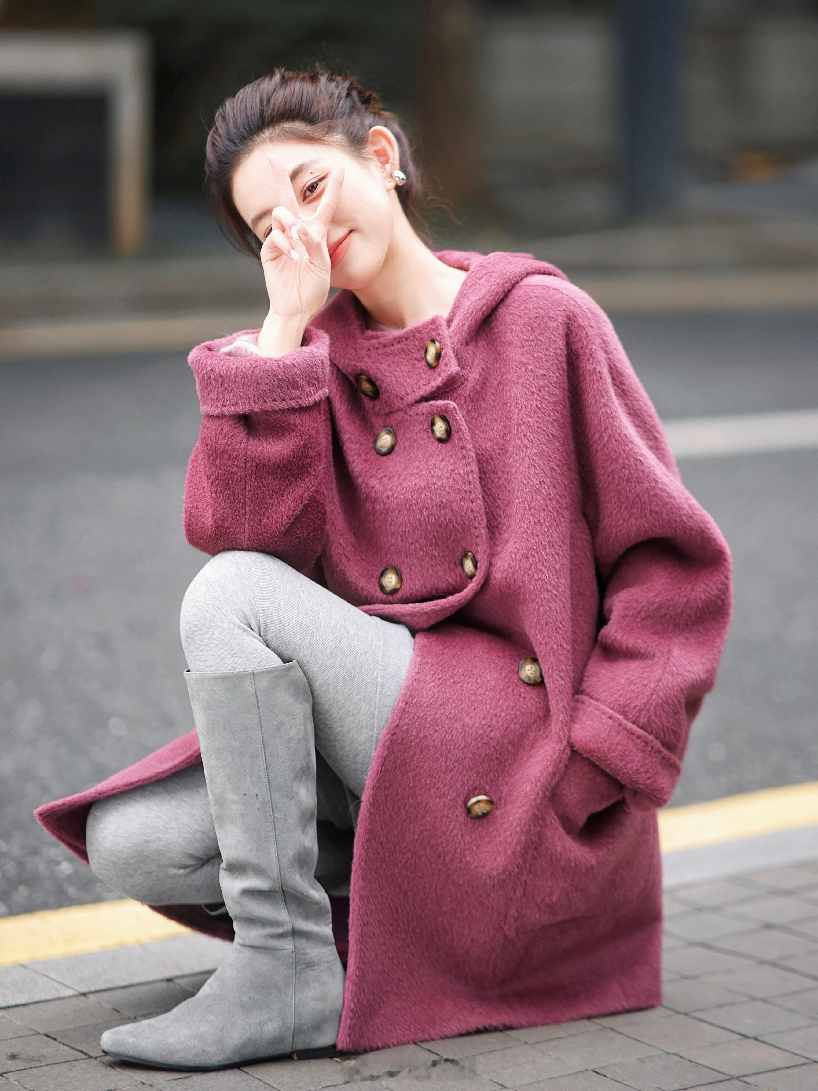 这款可以说是松弛明媚天花板嘛!100苏力羊驼 还是顶顶美的绛紫色走在街上是会回头率飙升的节奏啊