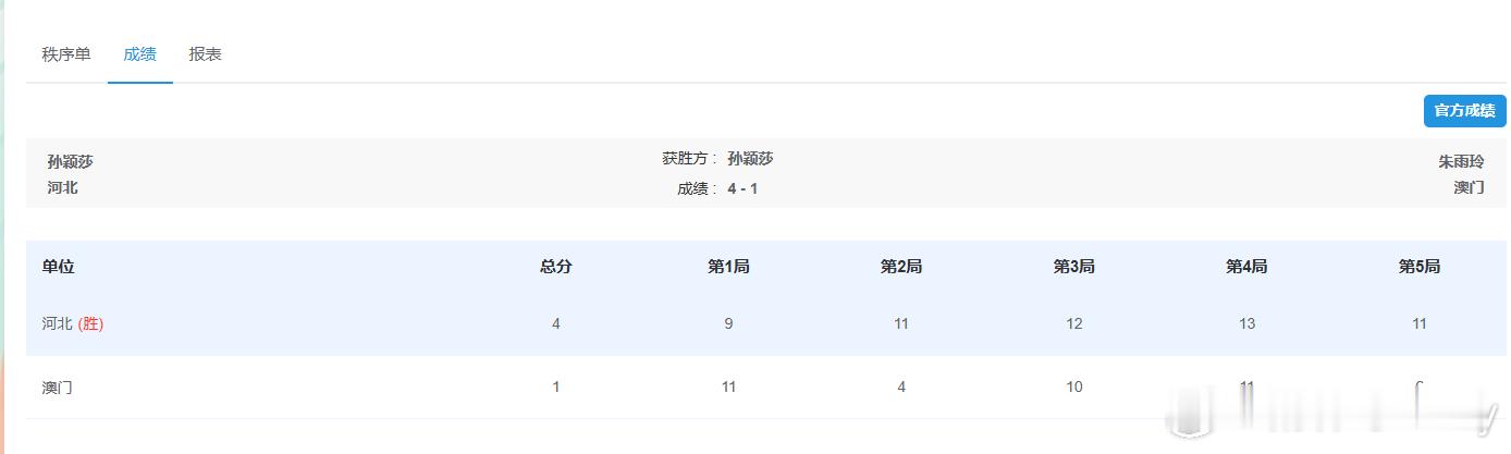 【全运乒乓】女单半决赛,河北名将孙颖莎在先丢一局情况下连扳四局4-1(9-11 11-4 12-10 13-11 11-6)淘汰澳门朱雨玲晋级决赛,决赛将和王曼昱争冠,鲨鱼强强对话即将火热上演。