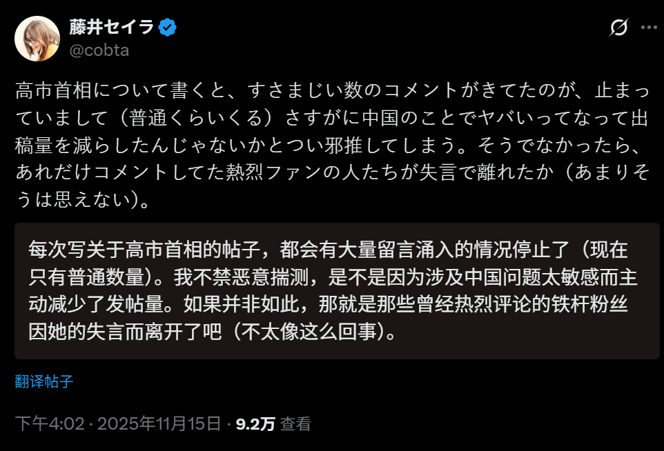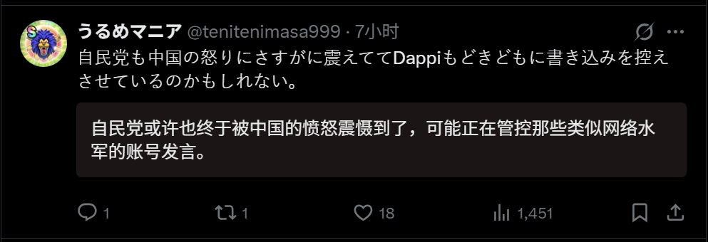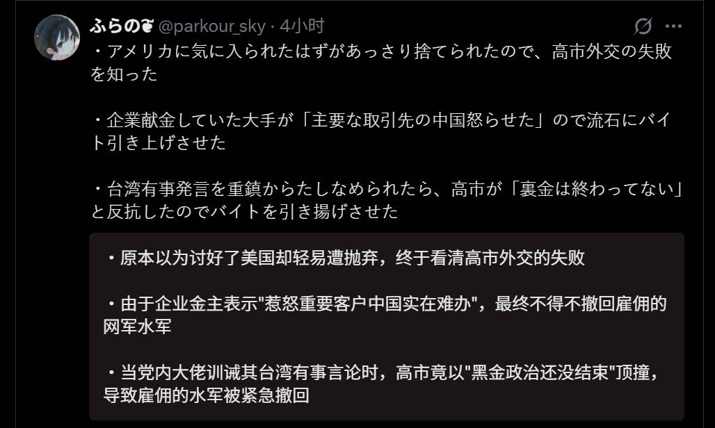 🔻网友分享:有日本网民嘲笑高市早苗的网络机器人水军断粮了。