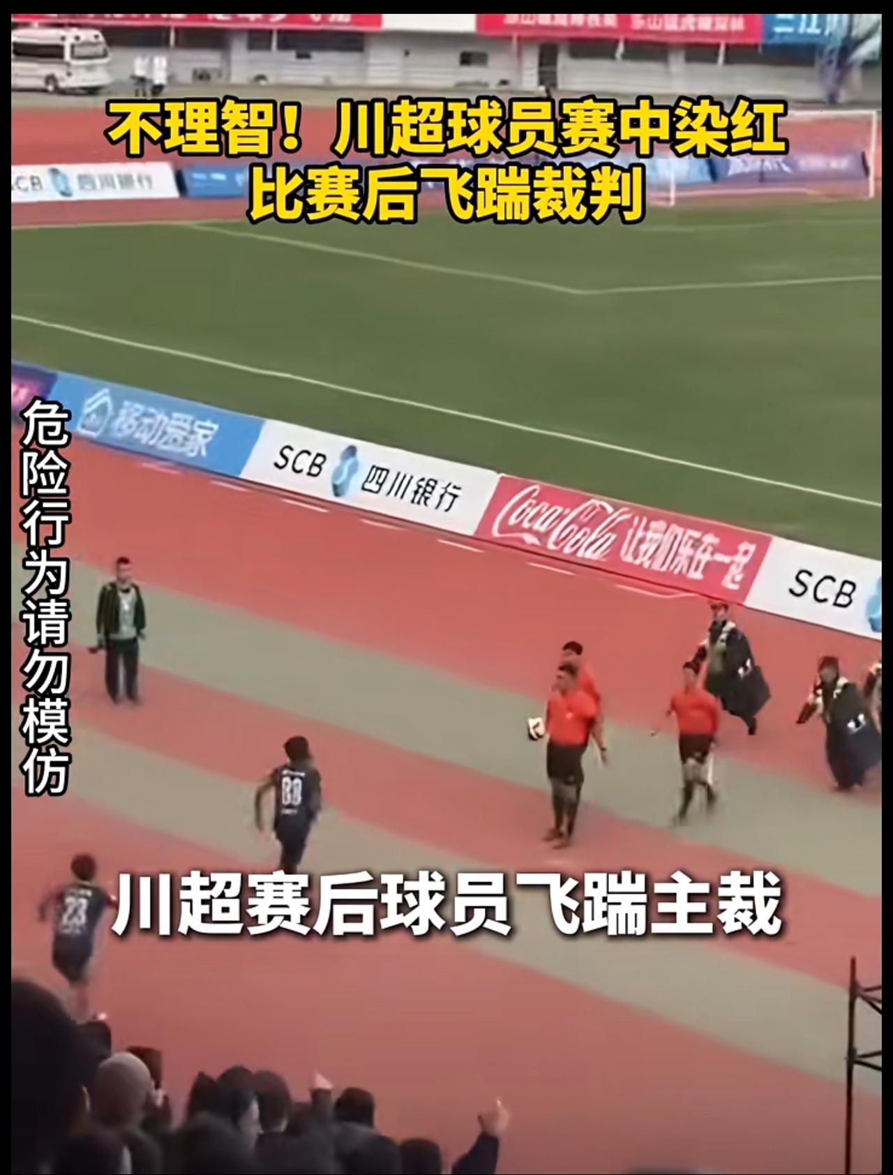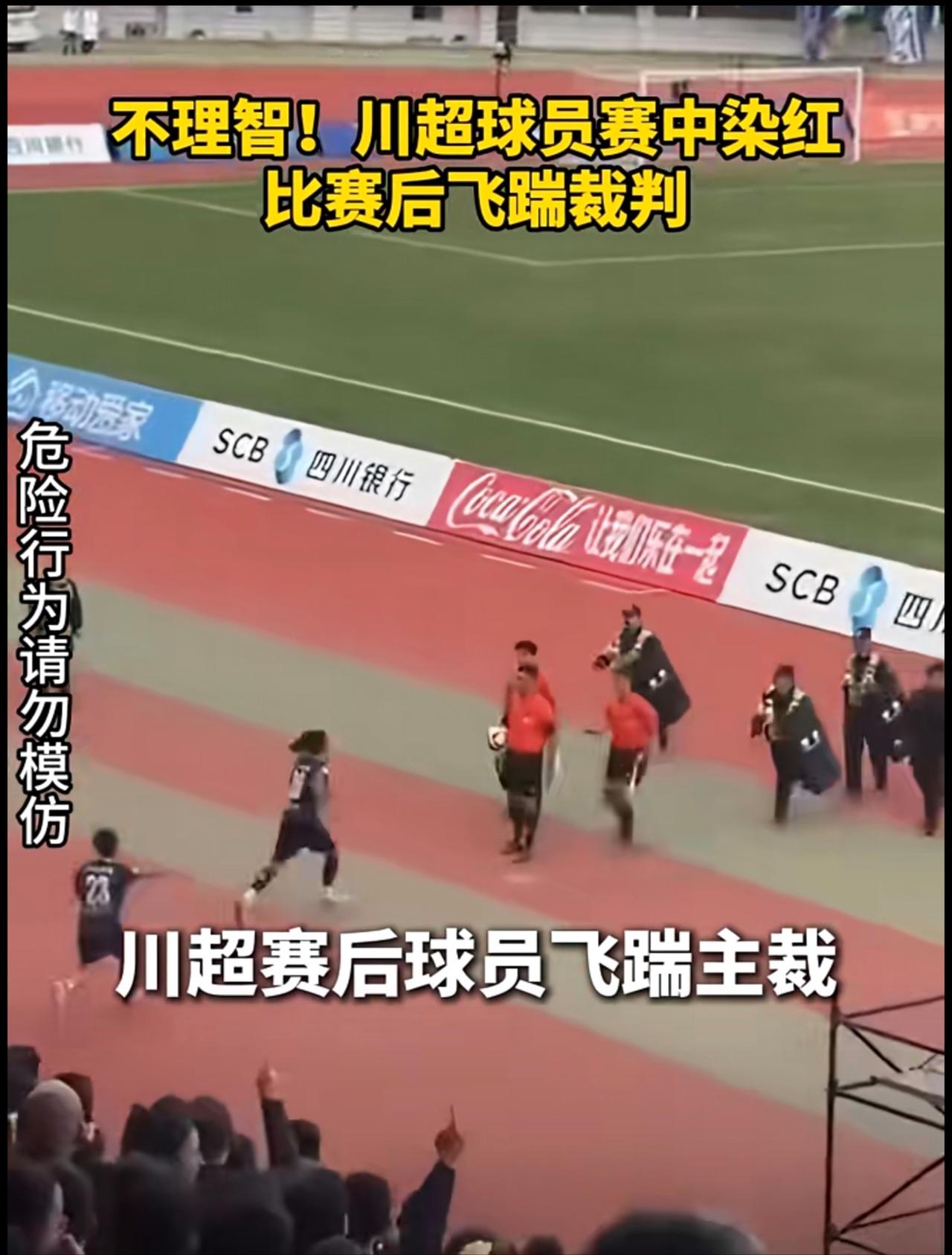 不理智!川超球员赛中染红,赛后飞踹裁判
