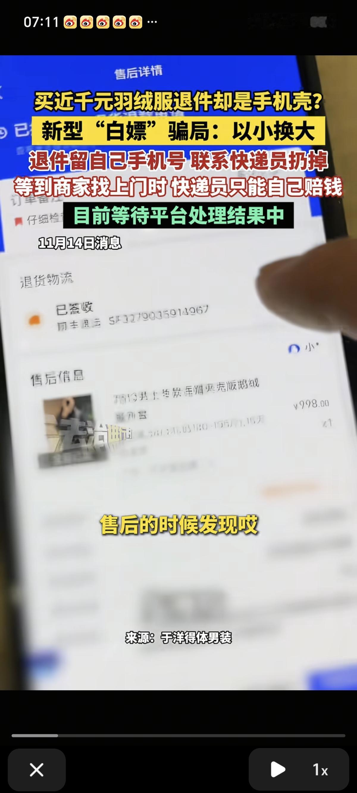 逆天红薯操作,把商家搞蒙了 云南女子购998元羽绒服退货秒变手机壳,企图甩锅快递