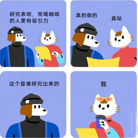 陈震同学的同学:问震哥为什么不喝咖啡,他说只喝带盖的,因为大牛上没有杯子架!