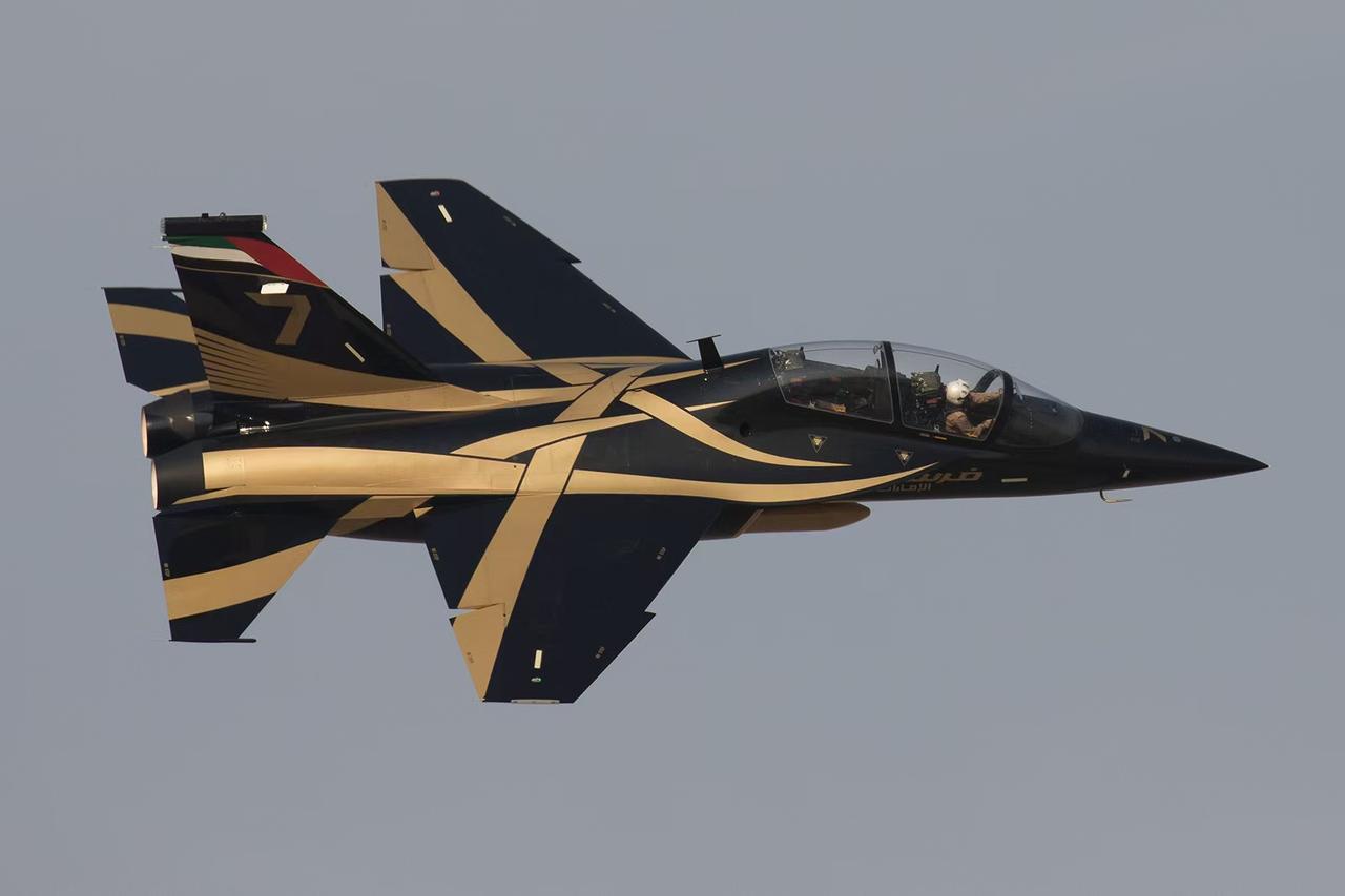 外国空军的战机太漂亮了,飞机的涂装设计也相当漂亮,甩我们空军杨村八一队八条街! 阿联酋“骑士”飞行表演队的涂装。从外观细节看,机身涂装的色调采用了标志性的黑金配色,垂尾带有阿联酋国旗图案。 战斗机是L-15“猎鹰”高级教练/战斗机,最早在2023年迪拜航展期间首次以该表演队涂装公开亮相。 L-15是一款双发超音速高级教练机,兼具教练与作战能力,阿联酋采购的这批L-15战机,除了用于替换老旧的MB-339教练机,还能够拓展至空军作战部队使用。