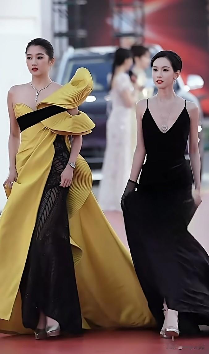 关晓彤昨晚金鸡奖领奖礼两套抹胸裙气场十足艳压全场!!! 新一届金鸡奖昨晚举行颁奖典礼,关晓彤作为颁奖嘉宾耀眼全场。 小关在走红毯和颁奖环一节分别穿不同礼服盛装亮相。 分别是一身金黄色抹胸长摆裙,腰部以下搭配黑色网纹蕾丝裙摆,显得匠心独具,非常高级。 这无疑是昨晚红毯上最耀眼最出圈的礼服,瞬间拉高了关晓彤的气场和抢镜力! 很显然,这个心思花得值! 在颁奖环节,作为颁奖嘉宾的关哓彤换了一套中国红一字肩抹胸裙,由于她高挑的个头和妖娆的腰身,依然抢镜全场。 这身红装裙裾从某些视觉上看,关晓彤显得高大壮实,冷艳而气场更强。 所以,关晓彤这次颁奖礼上两次亮相,均显示出她越来越明显的气场,堪称气场女王! 金鸡奖颁奖红毯 关晓彤红毯造型