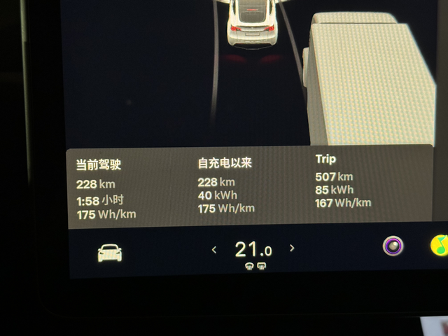 modely纯高速500公里能耗 ap110-120 自己开140 冲过一次电