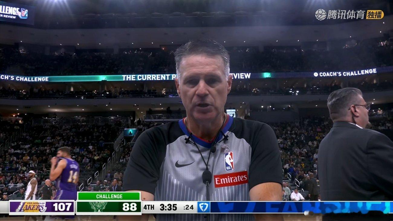 雄鹿挑战失败!裁判称库兹马明显接触了东契奇的投篮手。