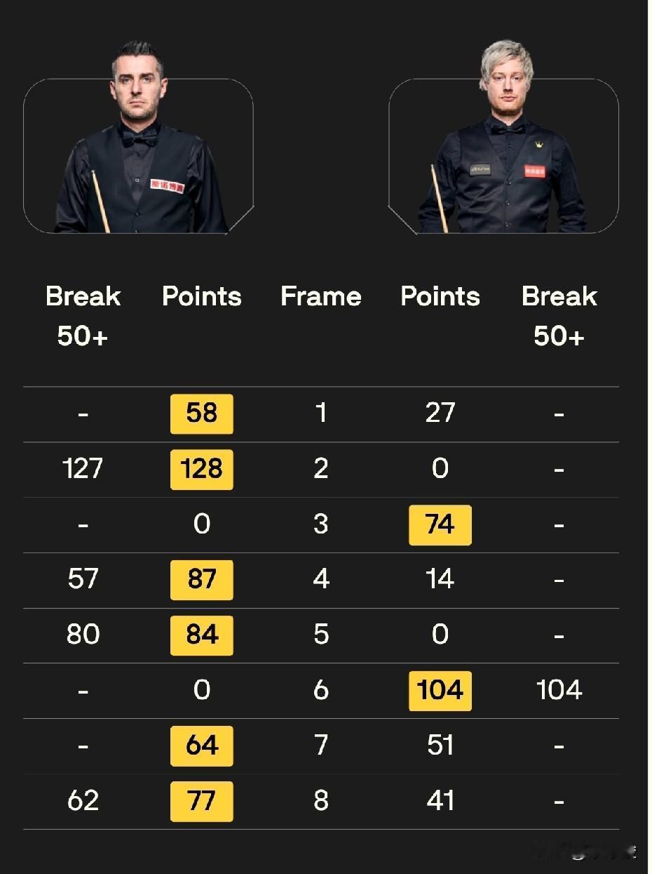冠中冠,塞尔比进决赛,今天将与特鲁姆普争夺冠军。 刚刚结束的第二场半决赛,塞尔比6-2大胜尼尔·罗伯逊。这场比赛,塞尔比一直领先,比分一度4-1。第6局,罗伯逊打出单杆破百,追到2-4。 关键的第7局,塞尔比64-51险胜,5-2率先拿到赛点。第8局,塞尔比也是比分领先,虽然罗伯逊做了几杆斯诺克让塞尔比罚分,但塞尔比还是以77-41锁定胜局。 今天21点和明天凌晨3点,冠中冠决赛将在特鲁姆普与塞尔比之间上演。决赛采用19局10胜制,冠军奖金15万英镑,亚军6万英镑。