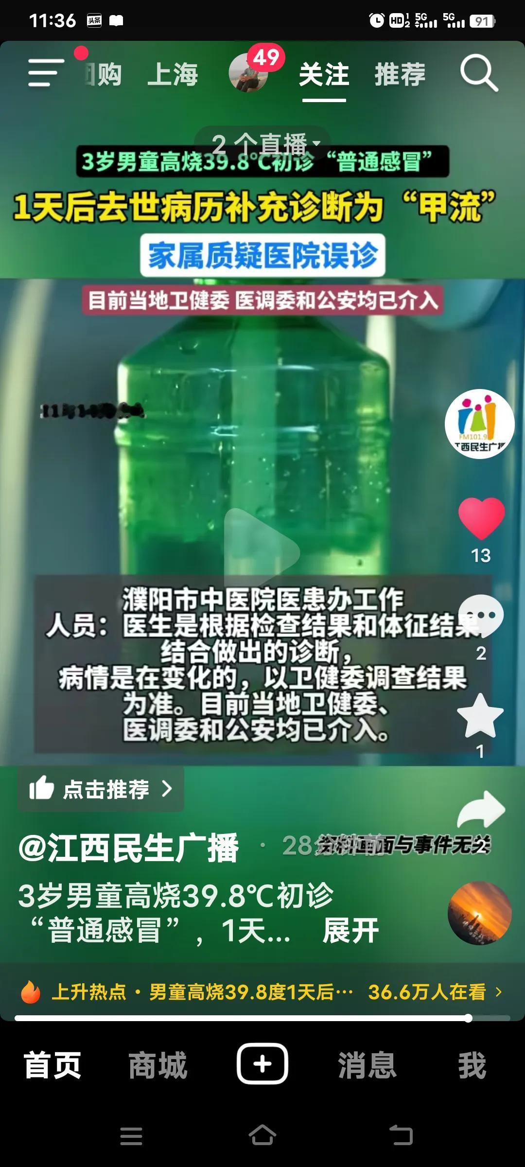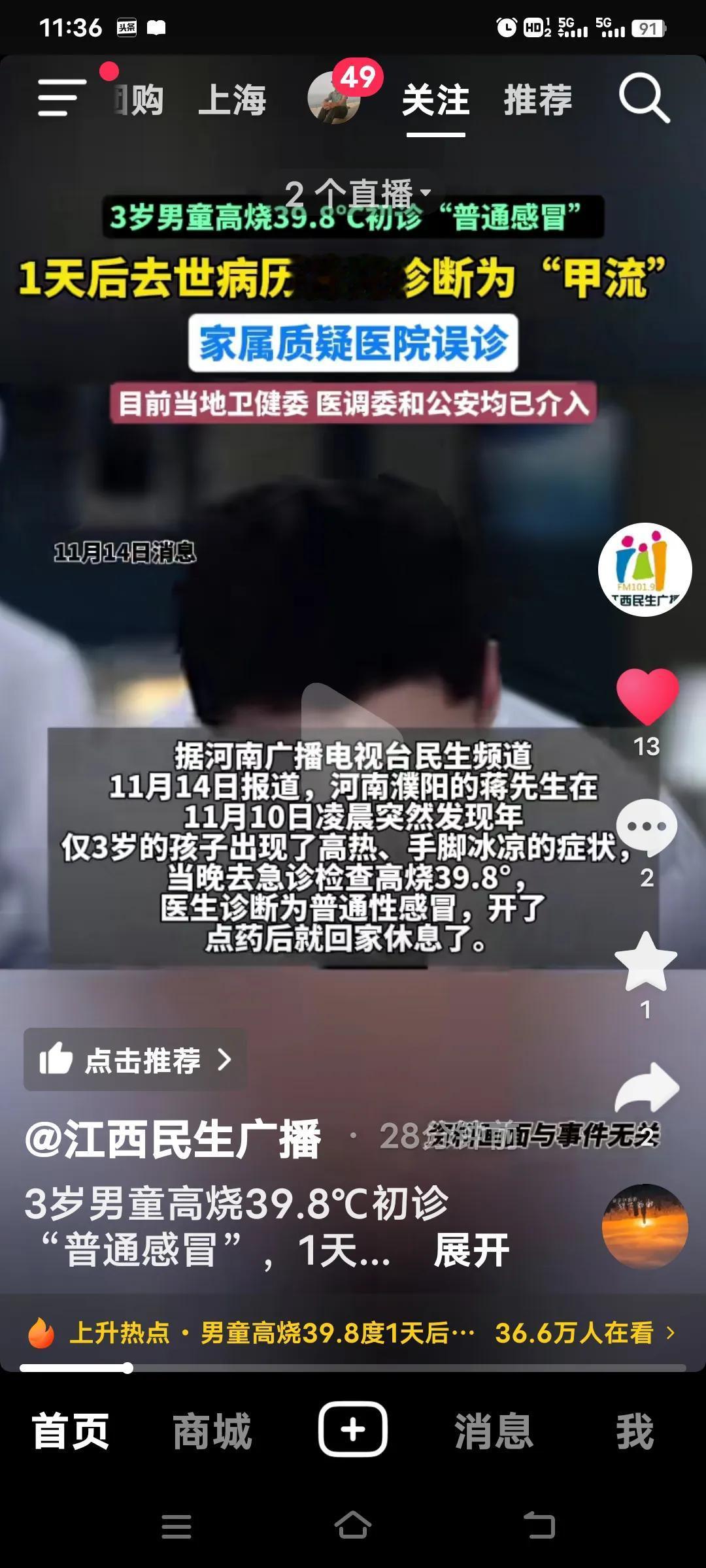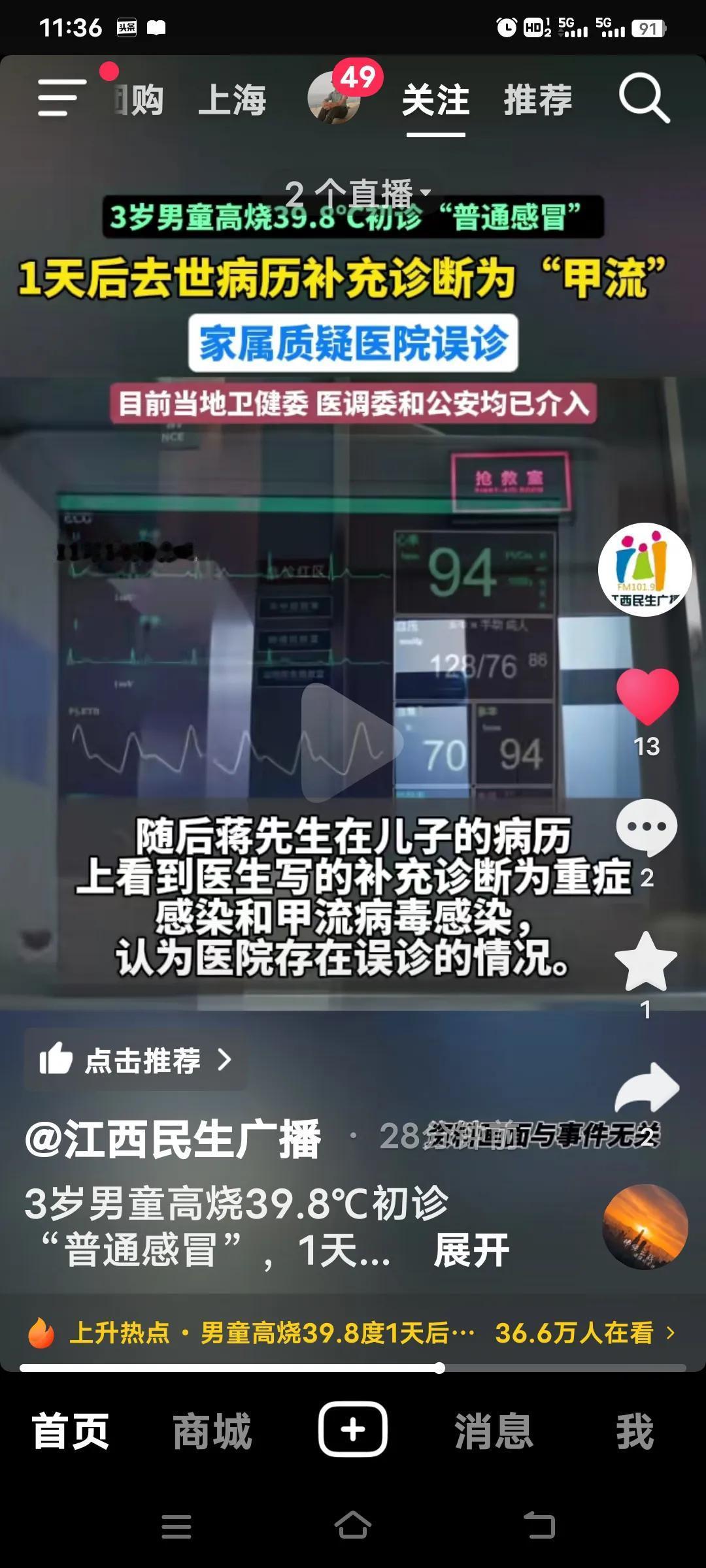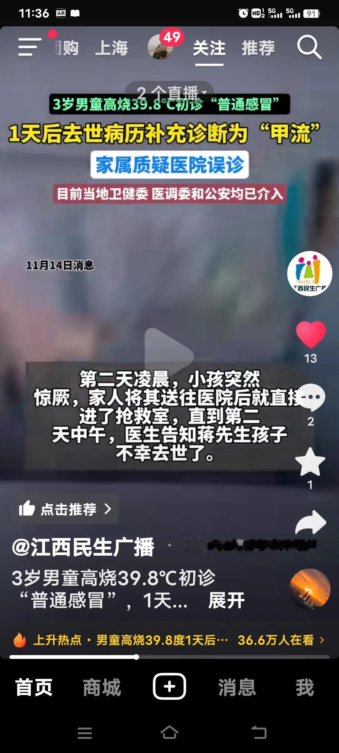 河南医院最近究竟怎么了,坏消息接踵而至!又有一名3岁儿童离世。 11月10日凌晨,河南濮阳的蒋先生发现3岁儿子高烧39.8度,手脚冰凉,赶忙送医治疗。医生诊断为普通感冒,开了药后就回家休息了。次日早上,孩子出现惊厥症状,被紧急送往急诊科。中午,医生告知蒋先生,他的儿子不幸去世。随后,蒋先生在儿子的病历,发现医生补充诊断为重症感染和甲流病毒感染。 蒋先生认为这是误诊,可医院工作人员称病情随时会发生变化。目前,当地卫健委、医调委和公安部门已介入此事。诚然,医院难以保证每一个患者都能治愈,生死有时难以预料,但倘若确实是诊断失误,医院就必须承担相应后果。 只可惜,这个孩子的生命永远定格在了3岁,实在可悲,其家人的悲痛心情可想而知! 宝宝离世 男童意外身亡 孩子去世 新生儿离世