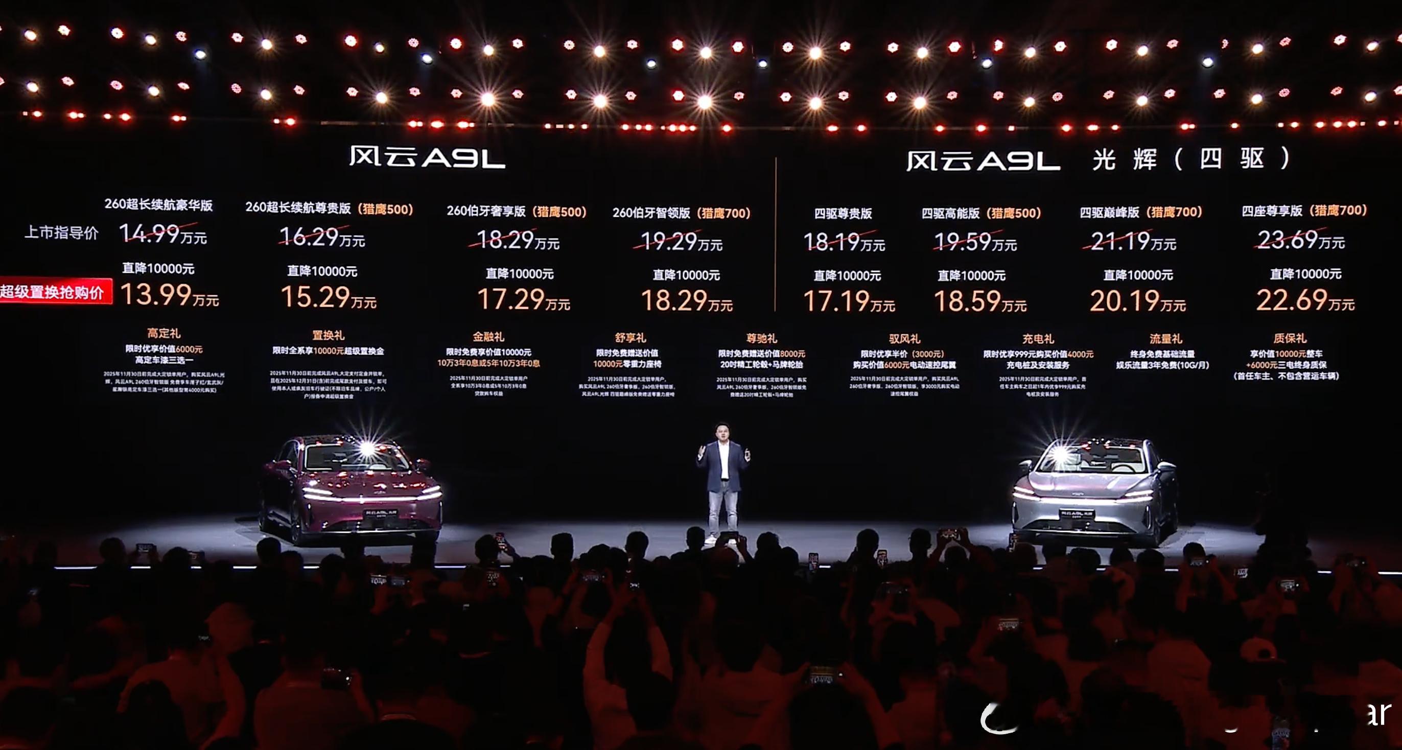 昨晚风云A9L发布上市了,14.99万元起,置换直接13.99万元。另外,它还发布了四驱版本,是全新的光辉序列,售价也高了不少。