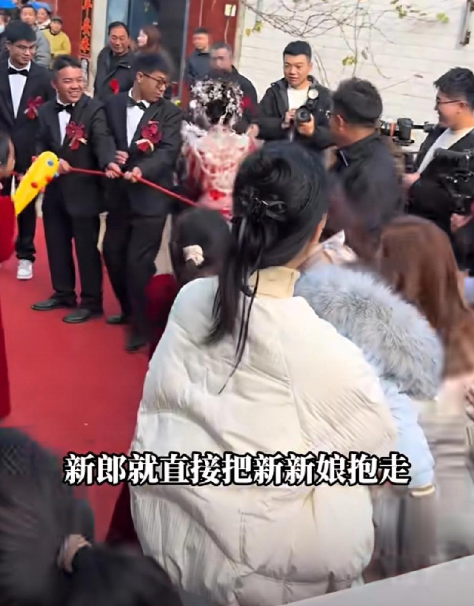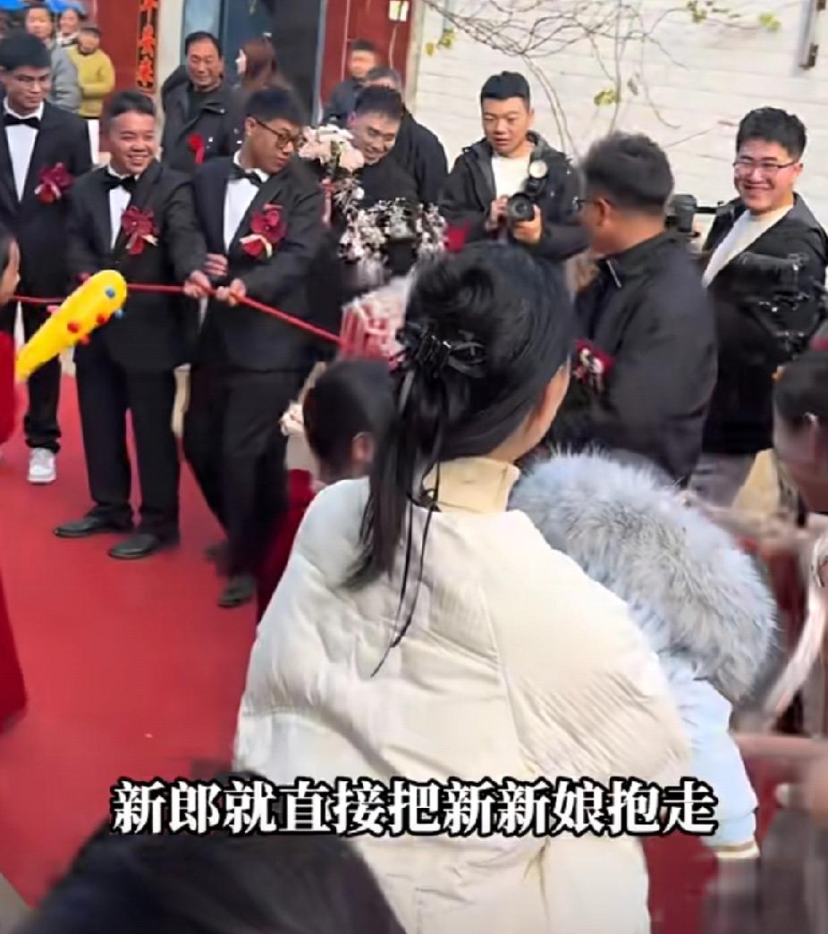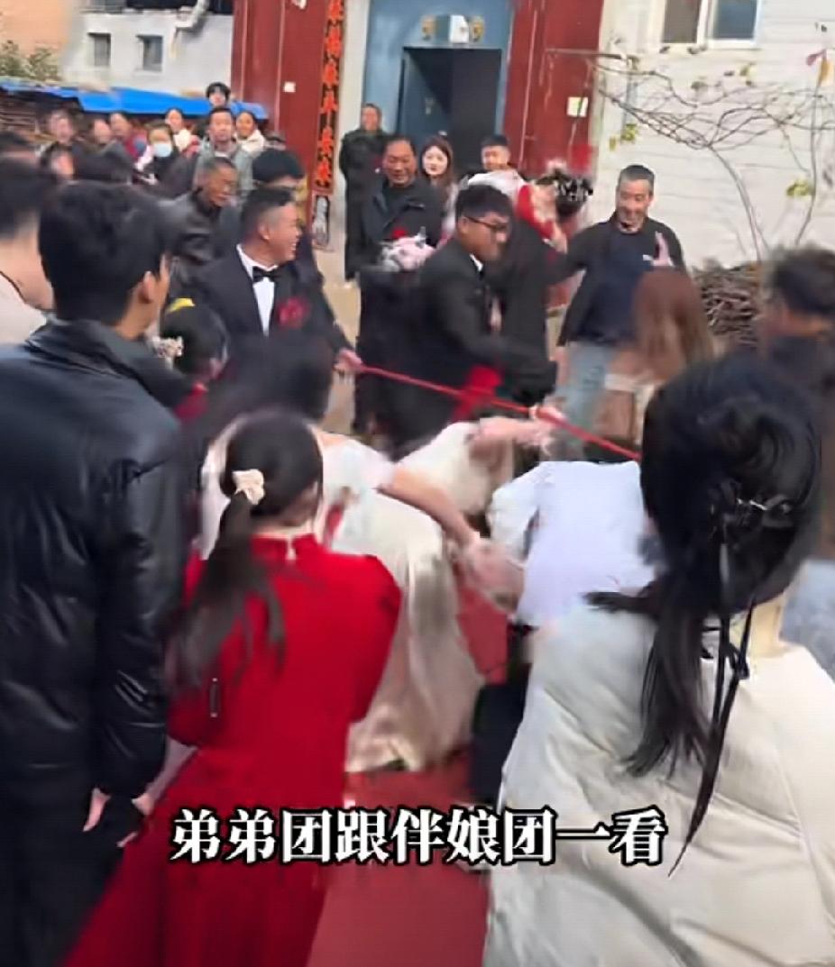 太默契了!新人接亲,娘家设置拔河游戏,赢了抱走新娘。结果新娘偷偷跑向新郎,新郎抱起就跑!11月12日,河南的一场接亲仪式上热闹非凡! 接亲前的拔河游戏,新郎方赢了就可以抱走新娘,结婚趁大家都在准备比赛之际,新娘自己跑到了新郎伴郎那一边。 新郎见状赶紧迎上新娘,抱起来就跑,伴娘们发现时惊叫连连,但为时已晚。新郎抱着新娘在伴郎团的守护下迅速向前跑,不成想半路被新娘的两个弟弟火速追击,又将新娘抢了回去,真的是太热闹了! 新娘跑向新郎的那一刻,希望新郎能永远记住,她义无反顾地嫁给你,以后的日子里,多多爱她,包容她! 希望新人一生恩爱,希望女孩一生幸福!接亲比赛 河南