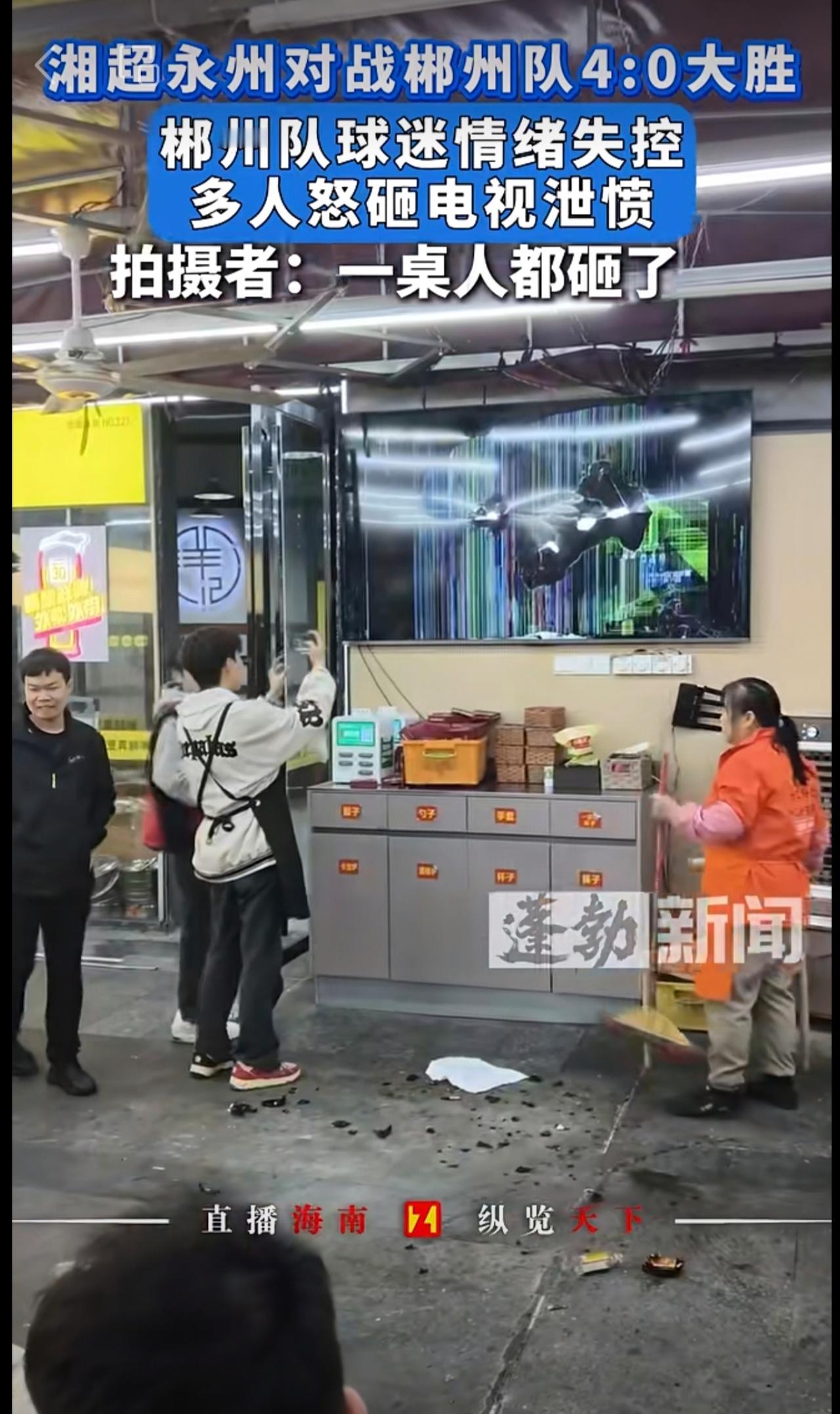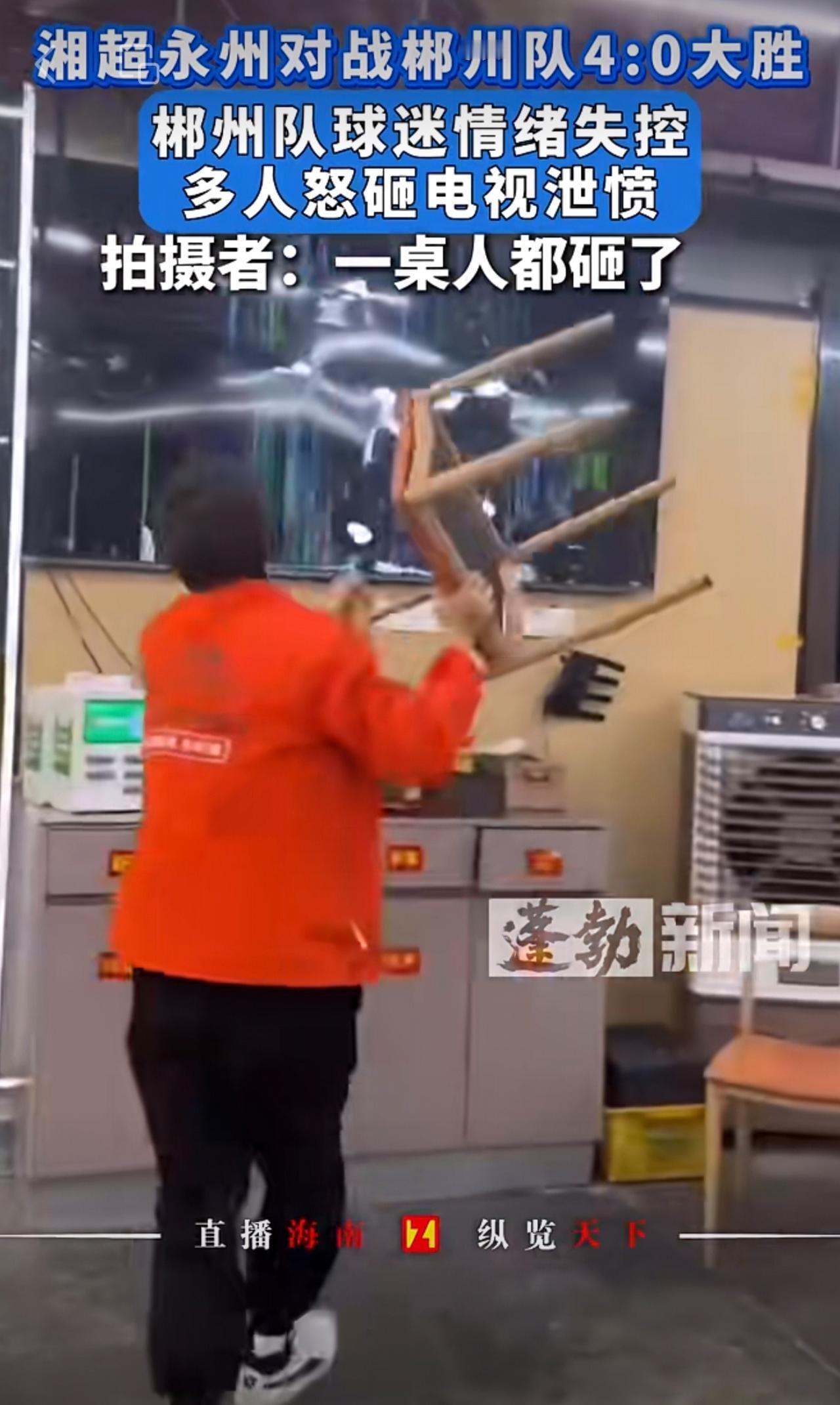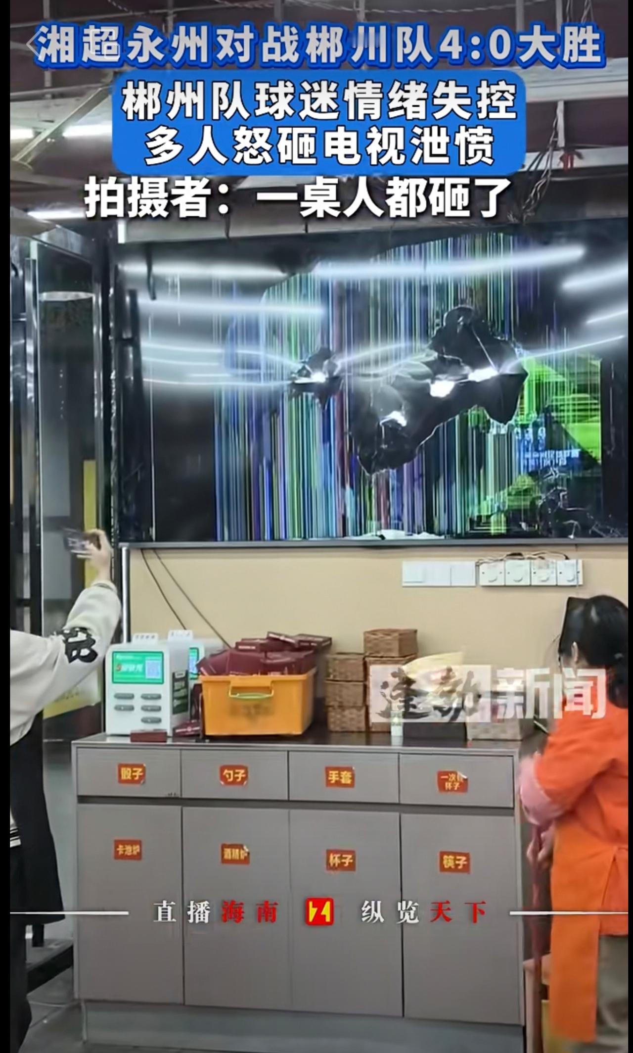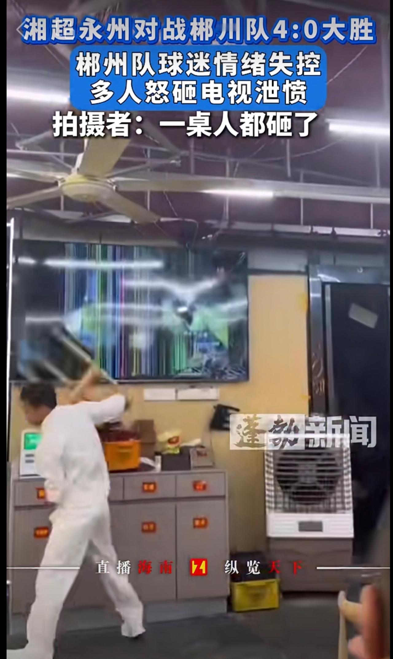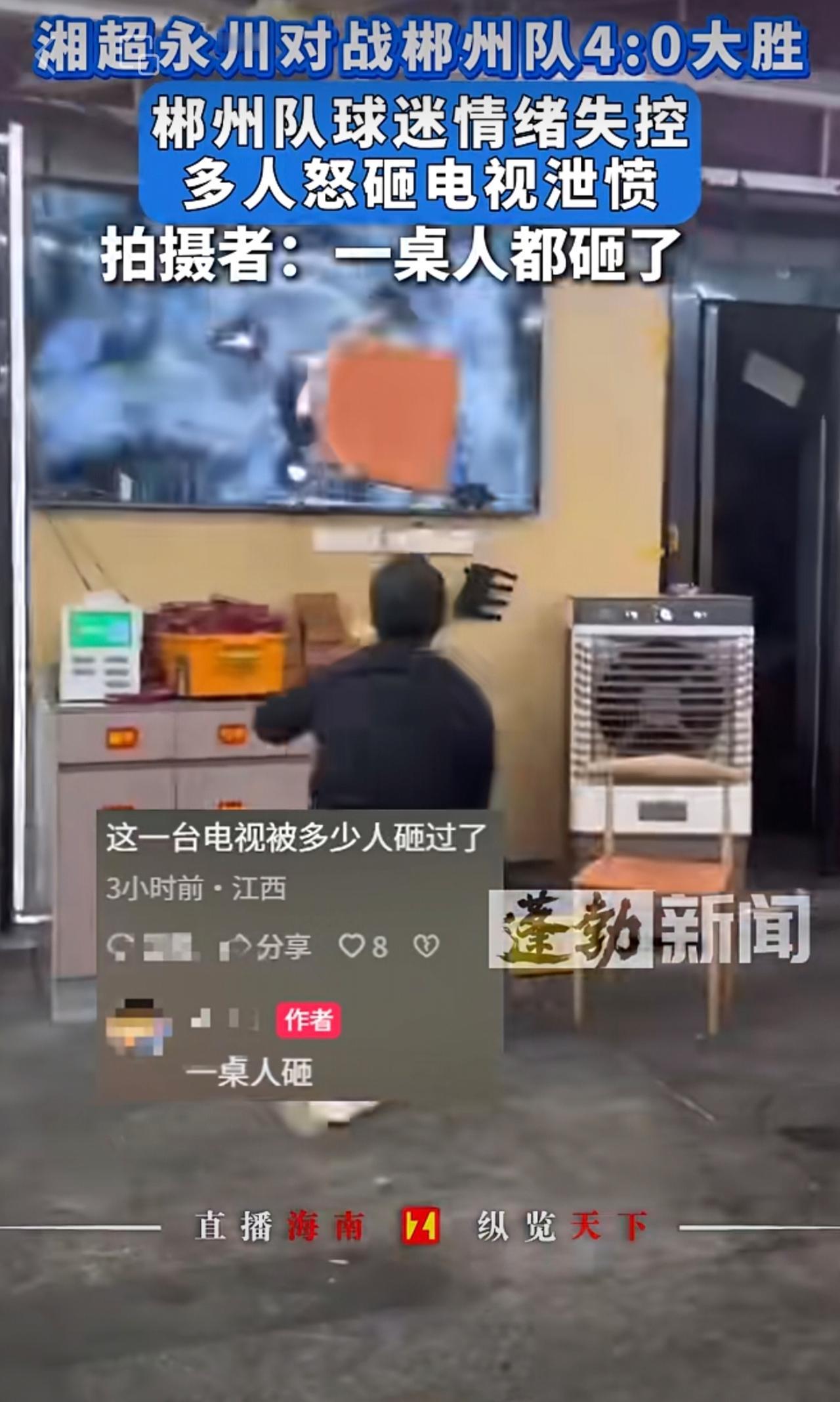 湘超永州对战郴州队4:0大胜,郴州队球迷情绪失控,多人怒砸电视泄愤!拍摄者:一桌人都砸了 输球 湘超 足球