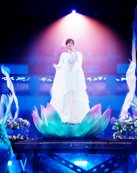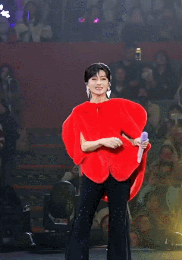 演出现场,赵雅芝演唱了《千年等一回》《万水千山总是情》等金曲,引发万人大合唱。