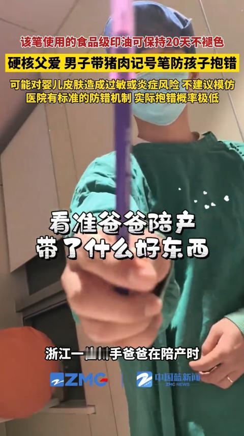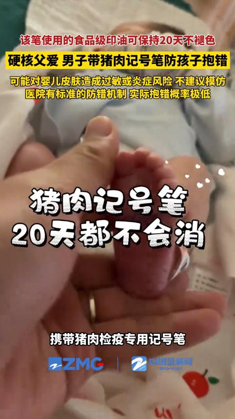 “人怎么能这么聪明!”近日,浙江,一男子陪老婆生孩子时,担心孩子被抱错,他特地用猪肉记号笔,在宝宝脚底留下了标记!这种笔能保持20天不褪色,而且对人体无害,所以就不会担心抱错了。网友:这父爱有点硬核! 这位姓张的师傅,之前开了好几年肉铺,手上的老茧还带着点当年斩骨的力道,可站在产房外,他却比谁都紧张。 手心的汗擦了又冒,来回踱步的脚步在走廊上踩出细碎的声响,三个多钟头里,手机屏幕亮了无数次,却一个字都没发出去,满脑子都是里面的老婆和即将见面的孩子。直到那声清亮的啼哭穿出门缝,他悬着的心“咚”地一下落回肚子里,几乎是踉跄着扑到产房门口,被护士笑着拦了一下才稳住神。 看到产床上脸色苍白却笑着看他的老婆,还有襁褓里那个皱巴巴的小肉团,老张的眼睛一下子就热了。他小心翼翼地凑过去,手指刚碰到宝宝柔软的小脚丫,又赶紧缩了回来,像是怕碰坏了什么稀世珍宝。就在护士准备抱宝宝去做常规检查时,老张突然从口袋里掏出个东西,不是早就准备好的金银锁,也不是小袜子,而是一支紫色的记号笔。 他蹲在床边,屏住呼吸,手腕微微发抖,在宝宝的脚底板上,一笔一划地画了个小小的爱心。那笔的颜色很正,在嫩白的皮肤上格外显眼,却又透着股说不出的认真。旁边的护士先是愣了一下,随即抿着嘴笑了,大概是头一回见这么“实在”的新手爸爸。 这可不是普通的文具笔。老张后来跟人说,从老婆怀孕七个多月开始,他就琢磨着怎么能给宝宝做个“专属标记”。倒不是不信医院,就是心里总有点空落落的,总觉得亲手做点什么,才能把这份当爹的踏实攥在手里。 他跑遍了家门口的文具店,那些笔要么气味冲得人头疼,要么一蹭就掉,根本不符合他的要求。直到某天整理以前肉铺的旧东西,看到当年给猪肉做检疫标记的笔,他突然眼前一亮,这东西防水防蹭,能在肉上留二十多天印记,要是找对了型号,说不定对宝宝也安全。 他赶紧托以前认识的朋友,从外地的正规养猪场捎来这支检疫专用笔,还特意查了半天成分,确认是食品级的才放心。可这举动落在家里人眼里,还是闹了点小笑话。 孩子姥姥提着保温桶进来,一低头看见外孙女脚底板的紫爱心,吓得手一紧,保温桶的提手都差点滑掉,好半天才缓过劲来。 同病房的家属觉得新鲜,随手拍了段短视频发到网上,没成想一下子就火了。评论区里吵吵嚷嚷的,大多是觉得又好笑又感动。有人说这是给宝宝盖了个“专属防伪章”,比什么都管用;也有人想起自己刚当爸妈时的样子,说这份生怕出错的焦虑,只有过来人才懂。 顺着这个话题往下翻,才发现老张的“发明”不算新鲜。在不少电商平台上,打着“防抱错”旗号的记号笔、印章销量都不低。 商家们把“食品级印油”“天然可食用色素”的字样标得清清楚楚,客服更是拍着胸脯保证,墨水至少能留二十天,就算宝宝把脚丫子塞嘴里也没事。还有更精致的定制款圆形印章,能把宝宝的名字刻在上面,看起来比老张的紫色爱心洋气不少,也让这份焦虑的表达,多了点商品化的味道。 可这份让家长安心的“小物件”,在医生眼里却藏着风险。江苏有家妇幼保健院的护士长就提醒过,新生儿的皮肤比宣纸还嫩,屏障功能还没长好,吸收能力又强,那些墨水里含有的偶氮类色素、醇类溶剂,很容易引发过敏红疹,严重的还会导致化学性皮炎。更让人担心的是,有些廉价产品里可能掺了龙胆紫,这种成分现在已经发现有潜在致癌性,早就不推荐给小宝宝用了。 老张的宝宝后来做足跟血采集时,就因为那个洗不掉的爱心,只能换另一只脚,孩子的档案里也多了条“特殊标记婴儿”的备注。其实现在的医院,防错措施已经做得很严密了。 单人产房里全程有记录,宝宝一出生就会戴上写着父母信息的手环,每次抱离都要家属三方核对,抱错婴儿的概率早就微乎其微了。医生说老张这举动有点“多此一举”,可谁都明白,这份“多余”背后,是为人父母最朴素的牵挂。 说到底,那支紫色的记号笔,从来不是什么防范工具,更像是老张应对内心焦虑的一种心理仪式。他用自己最熟悉的方式,想给孩子一份守护,这份沉甸甸的父爱没错,只是找错了方法。 真正的安全感,从来不是靠这种可能伤害孩子的方式获得的,它藏在医院完善的保障里,也藏在家长科学细心的陪伴中。守护新生命的方式总要与时俱进,这份滚烫的父爱,也该用更安全、更科学的样子,去温暖孩子的成长路。 信息来源:中国蓝新闻