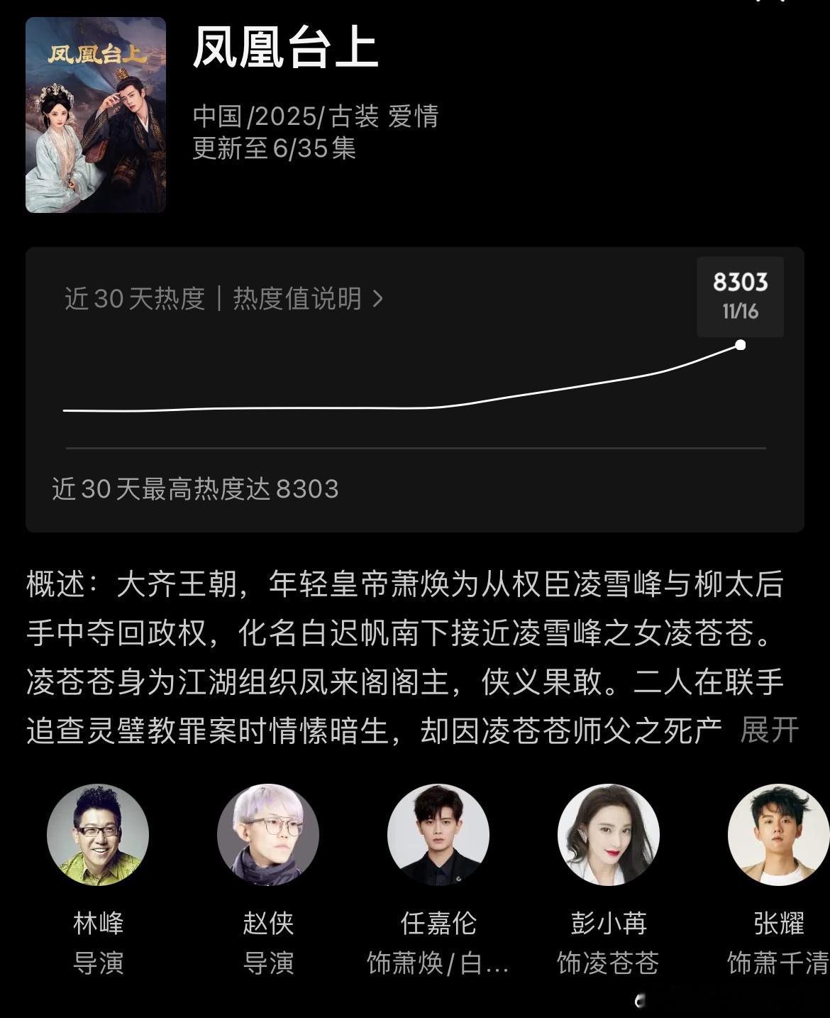任嘉伦、彭小苒 开播次日,峰值8040,较前日+1137,较更新后涨幅736拉新3642.89,➕45.17灯塔1339.3预计播放量940万上下酷云收视依然是0.22上下