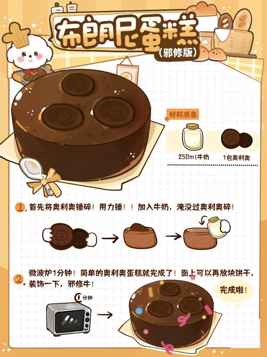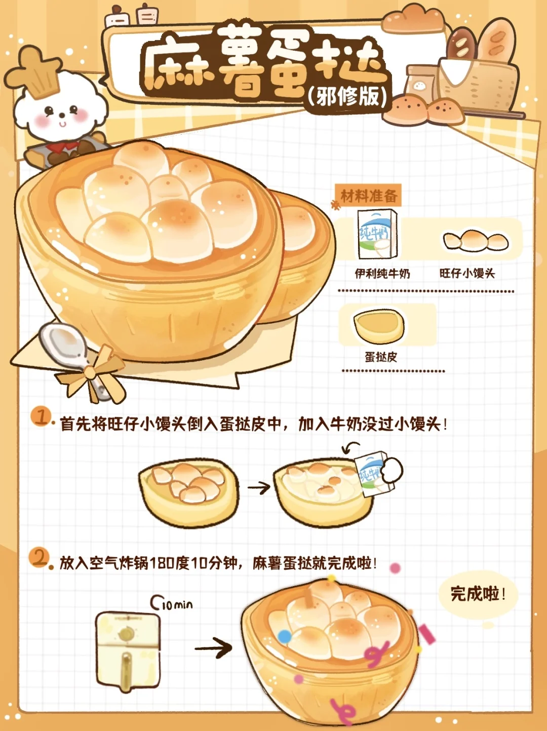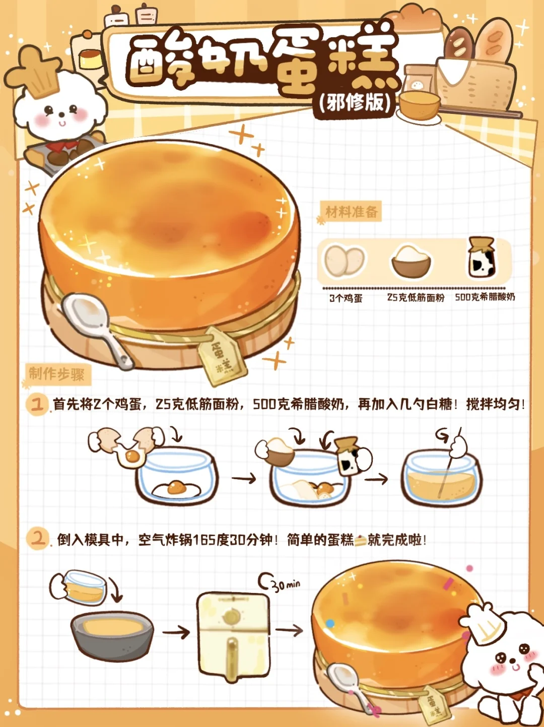 只需要3种食材🥚 最多不超过4种食材 做最近超火的邪修甜品🍰 布朗尼蛋糕🍰 1包奥利奥➕250ml牛奶 冰山熔岩🍫 150克巧克力🍫➕250克酸奶 曲奇饼干🍪 超大蛋挞🍨 1个旺仔牛奶➕1勺白糖➕2个鸡蛋 🍎苹果甜甜圈 1个苹果➕1个手抓饼皮➕1个鸡蛋🥚 酸奶蛋糕🍰 3个鸡蛋➕25克低筋面粉➕500克希腊酸奶 麻薯蛋挞🥛 旺仔小馒头➕牛奶➕蛋挞皮 🥭固体杨枝甘露 芒果➕西柚➕希腊酸奶 🧁纸杯蛋糕 1个鸡蛋➕半勺面粉➕1勺奶粉 ✨小贴士 所有配方都不用烤箱(微波炉/空气炸锅就行) 材料都是超市随手能买的! 亲测每款都不踩雷💗