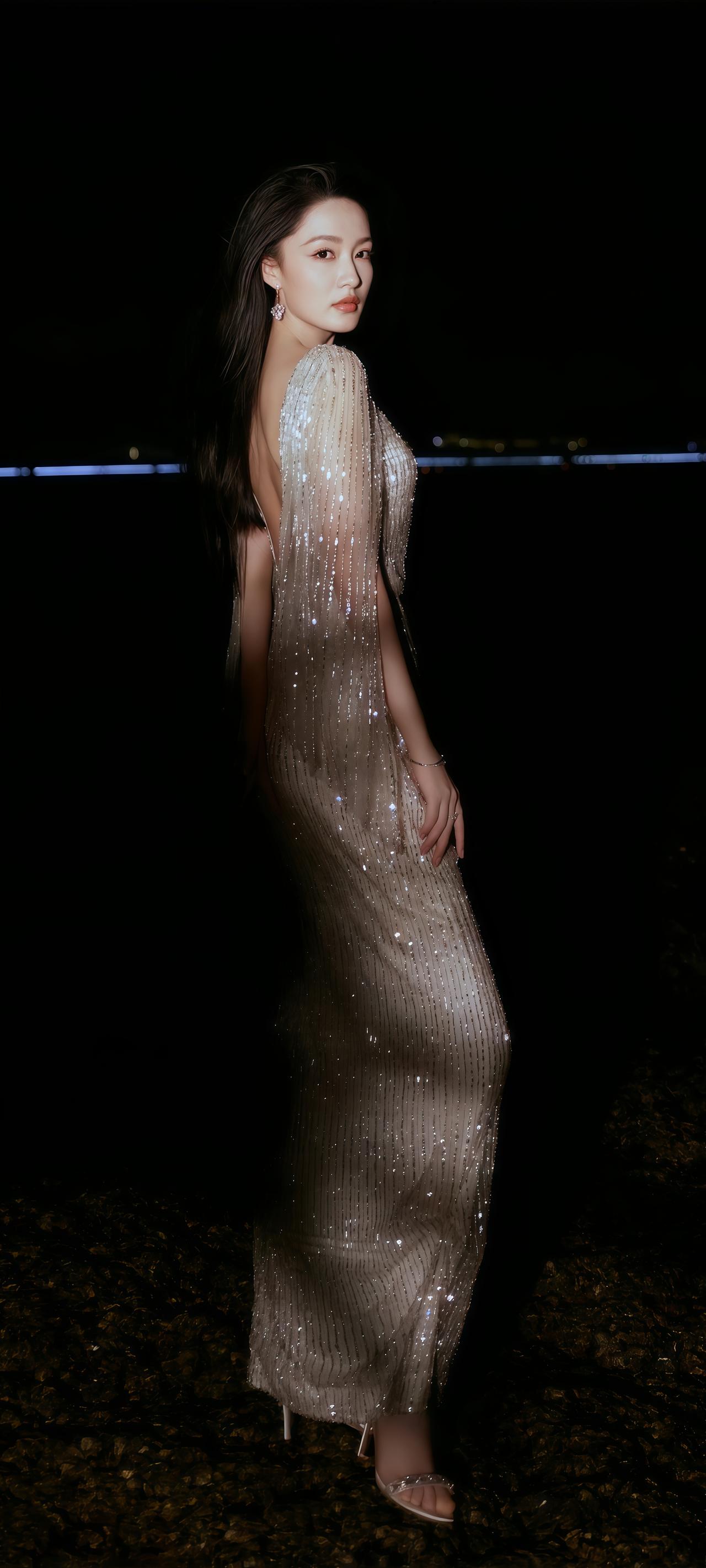 李沁,夜色中的优雅女神,闪闪发光的礼服,惊艳的夜景背景。李沁 时尚穿搭 明星时尚 好身材性感女神