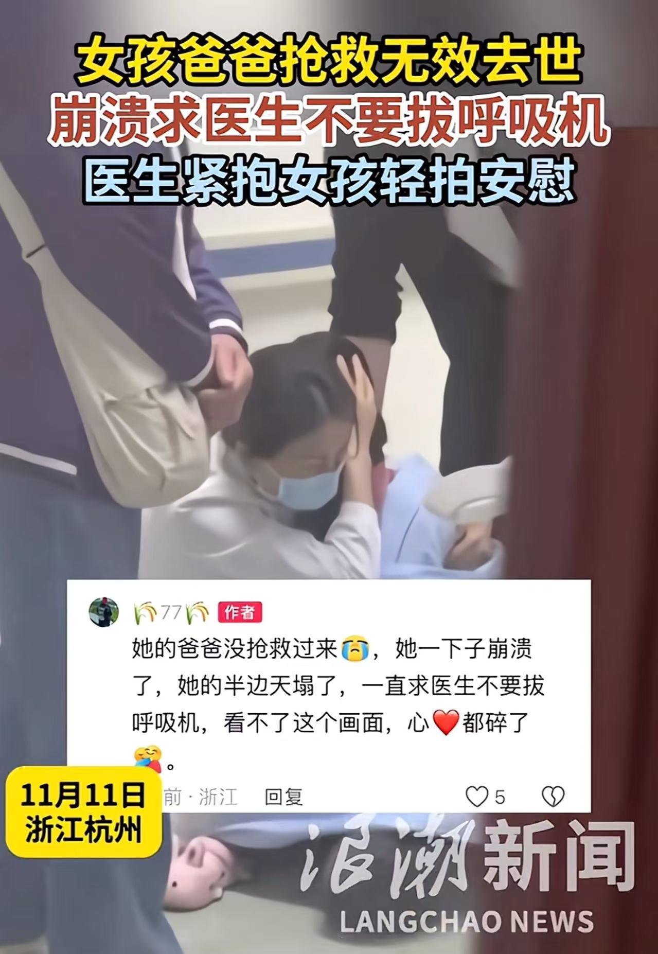 浙江杭州,女孩爸爸抢救无效去世,崩溃求医生不要拔掉呼吸机,医生的行为令人泪目!网