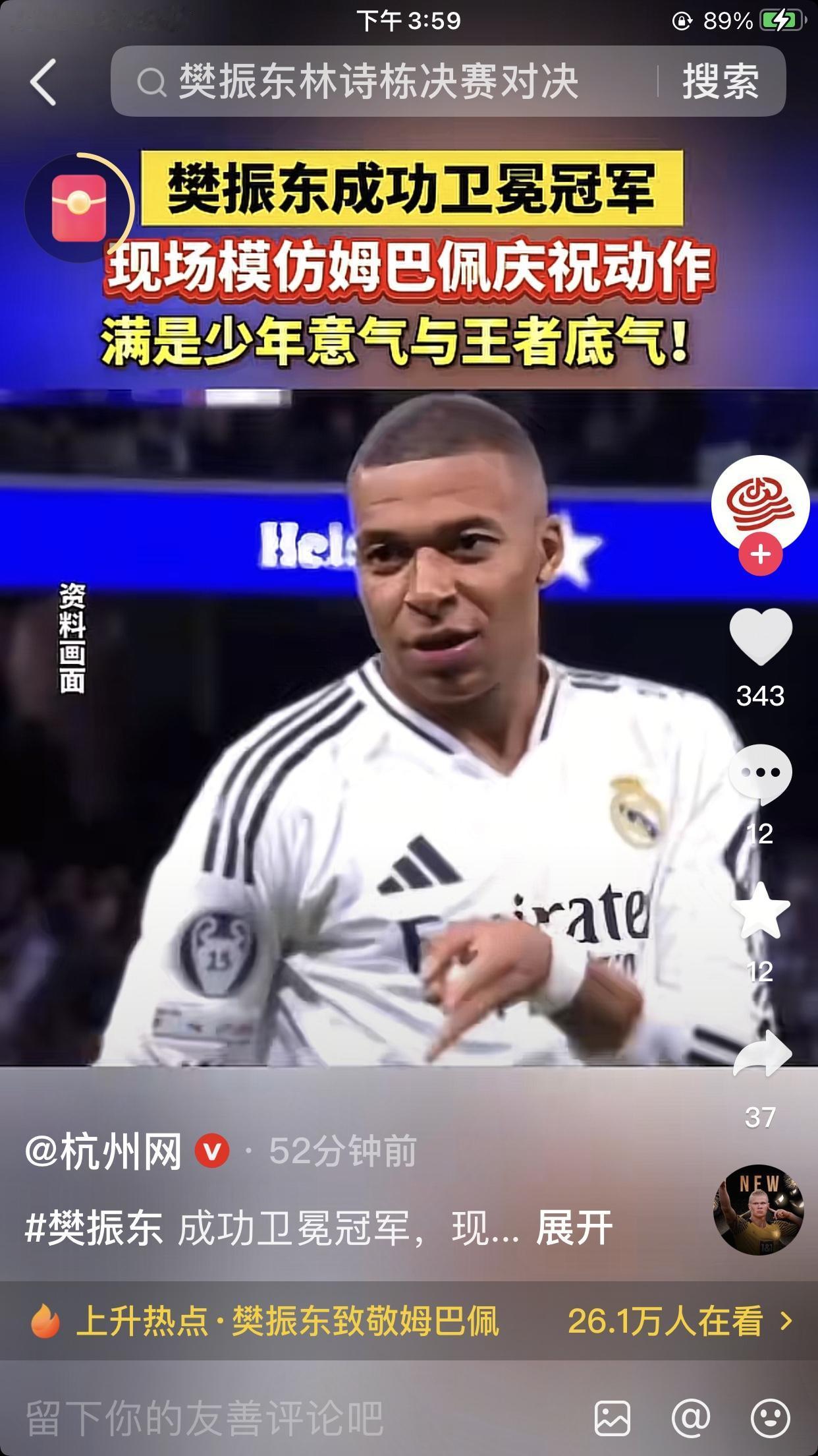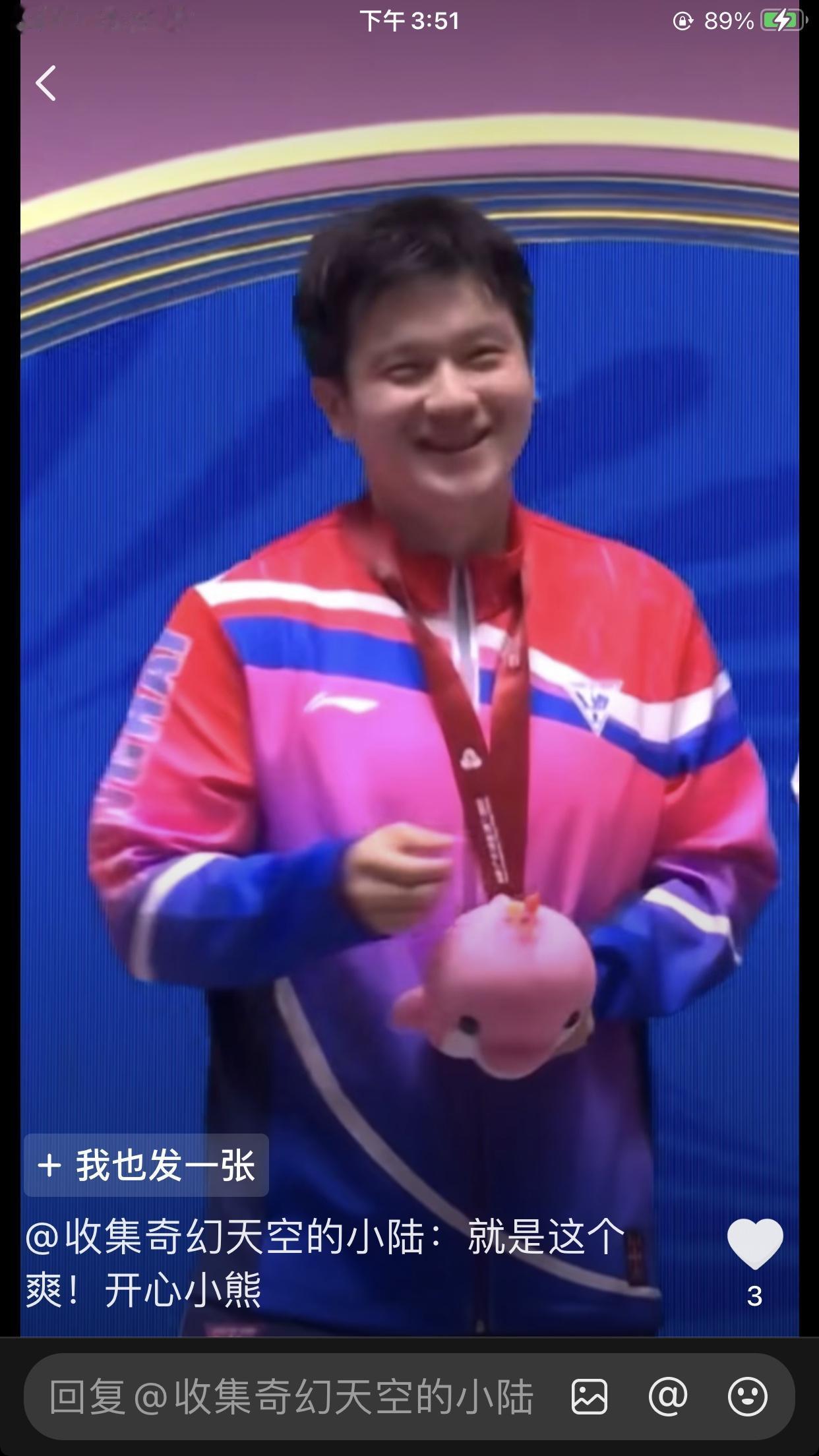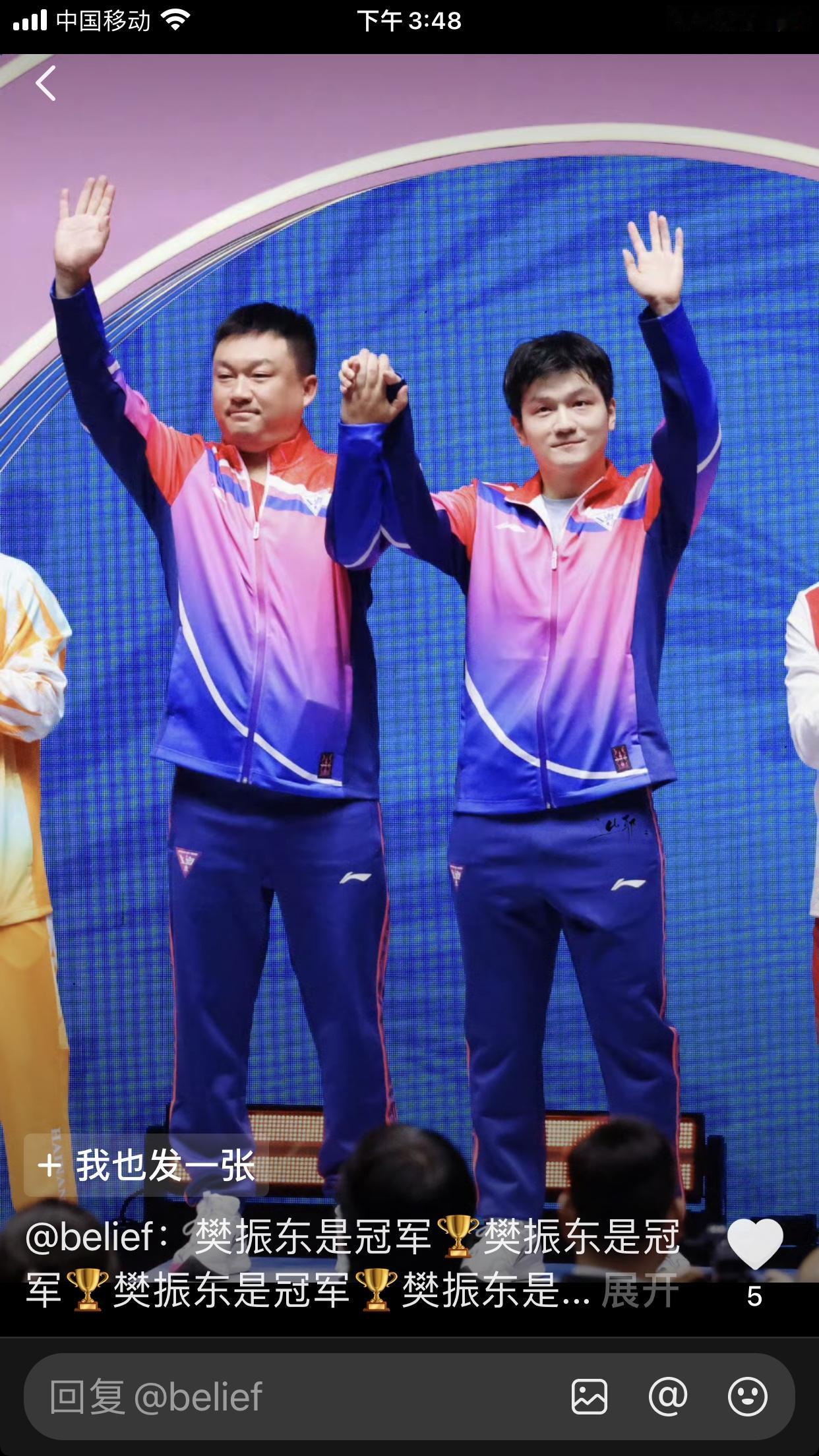 樊振东夺冠后又有新的庆祝动作了,122,这是模仿的姆巴佩的动作[呲牙]还是改良版的,多么的巧合,122东哥的运动员号码,也是他的生日! 不知为啥,就是看着东哥的庆祝动作舒服,别人学不来。东哥!! 在广东给广东拿金牌;到上海又给上海拿金牌。王者荣耀,王者归来[赞][赞][赞]