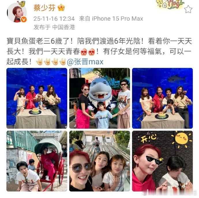 恭喜蔡少芬张晋!小儿子乐儿 6 岁啦,晒出的一家五口合照超温馨,儿女双全的圆满太让人羡慕~