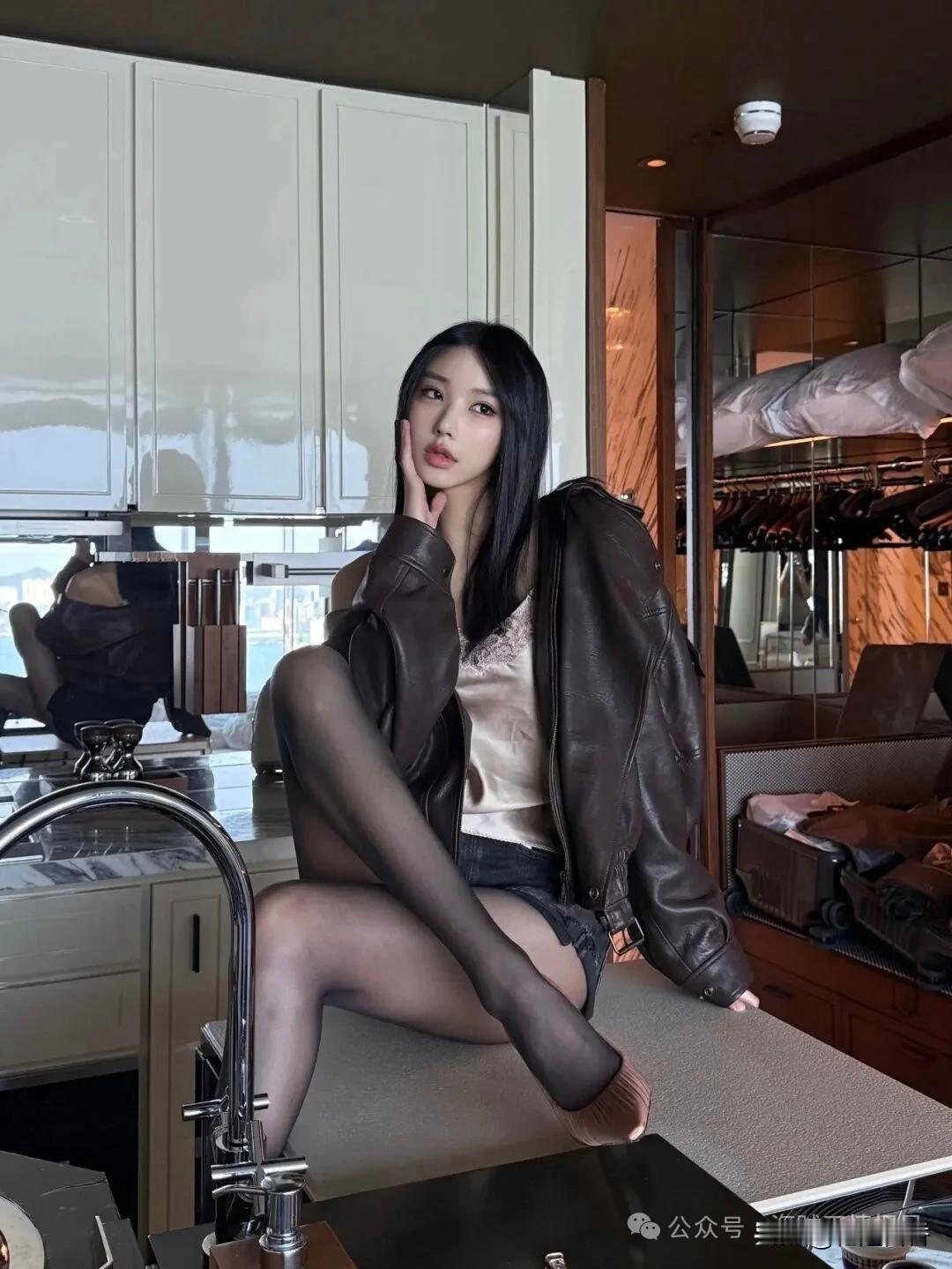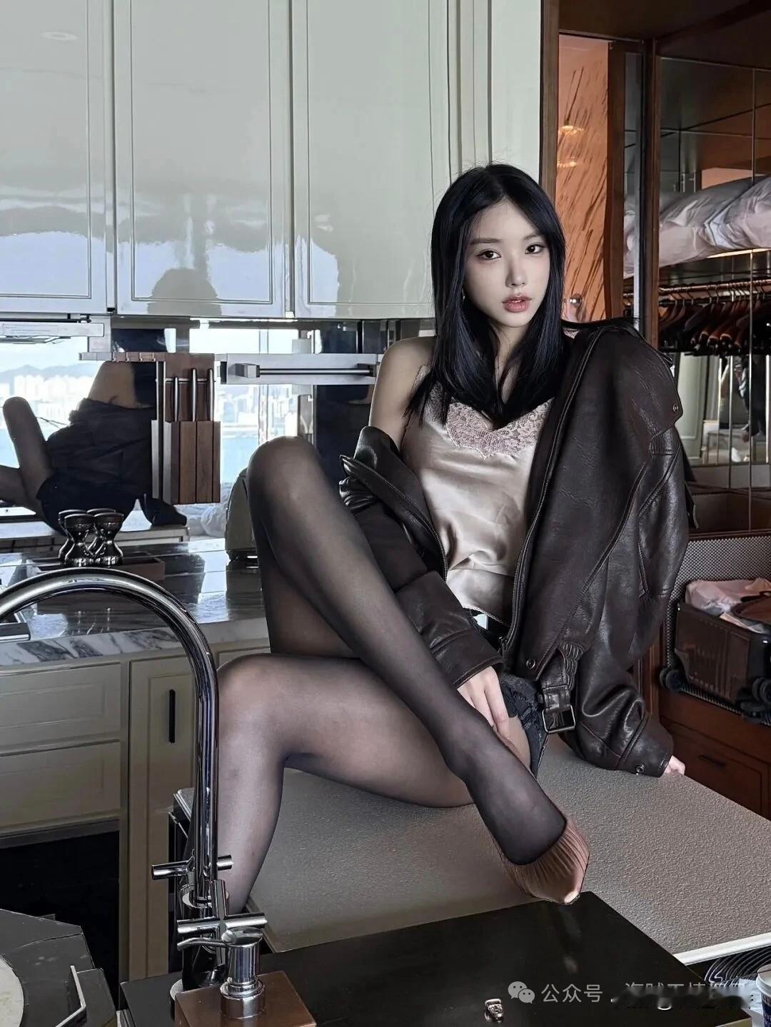 都市时尚女孩,黑皮夹克搭配透视丝袜,时尚感爆棚!