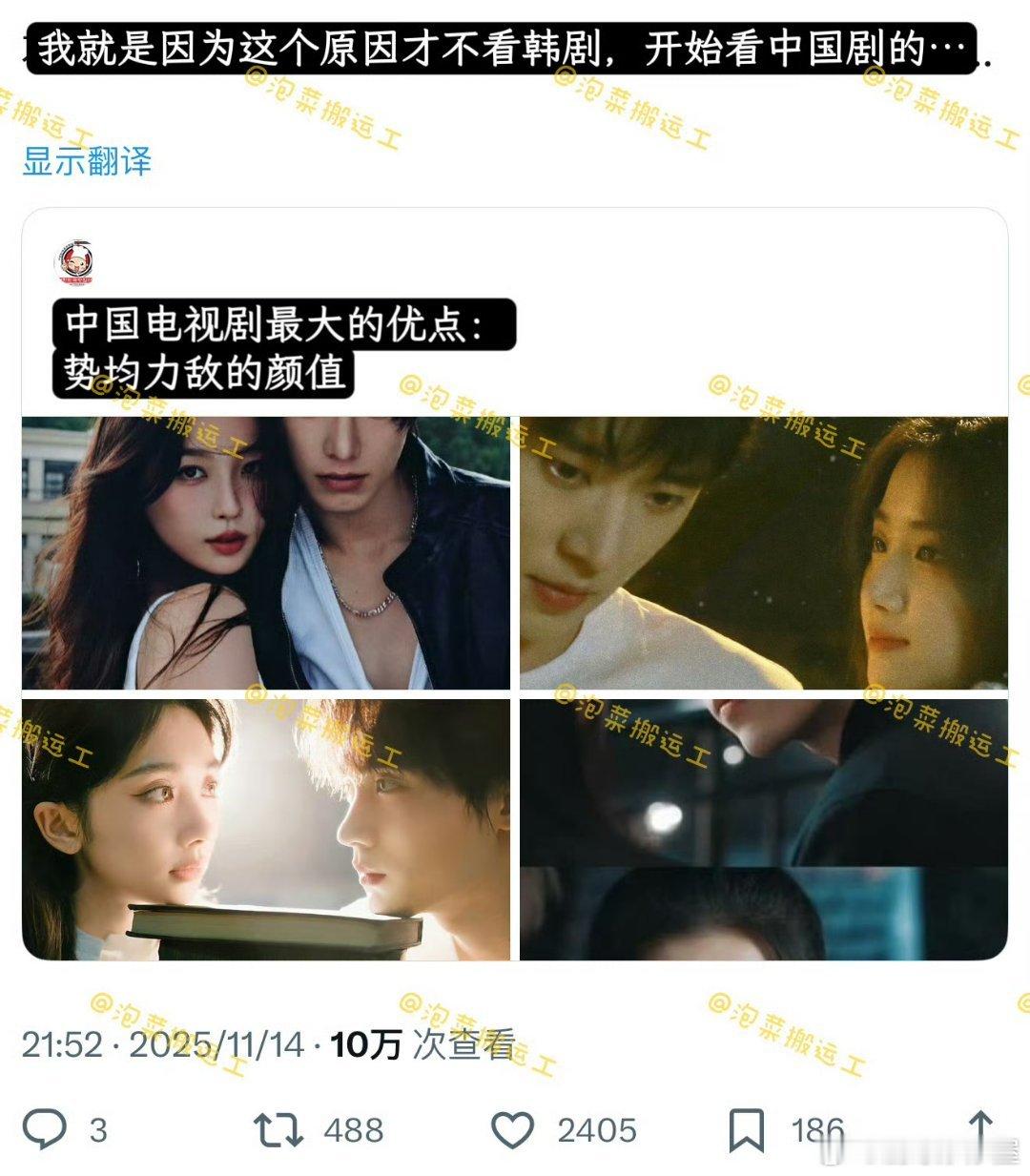 韩国人认为的中国电视剧最大的优点是:男女主势均力敌的颜值不过最近这几部韩剧男主真没几个能打的,女性角色相对更出圈些