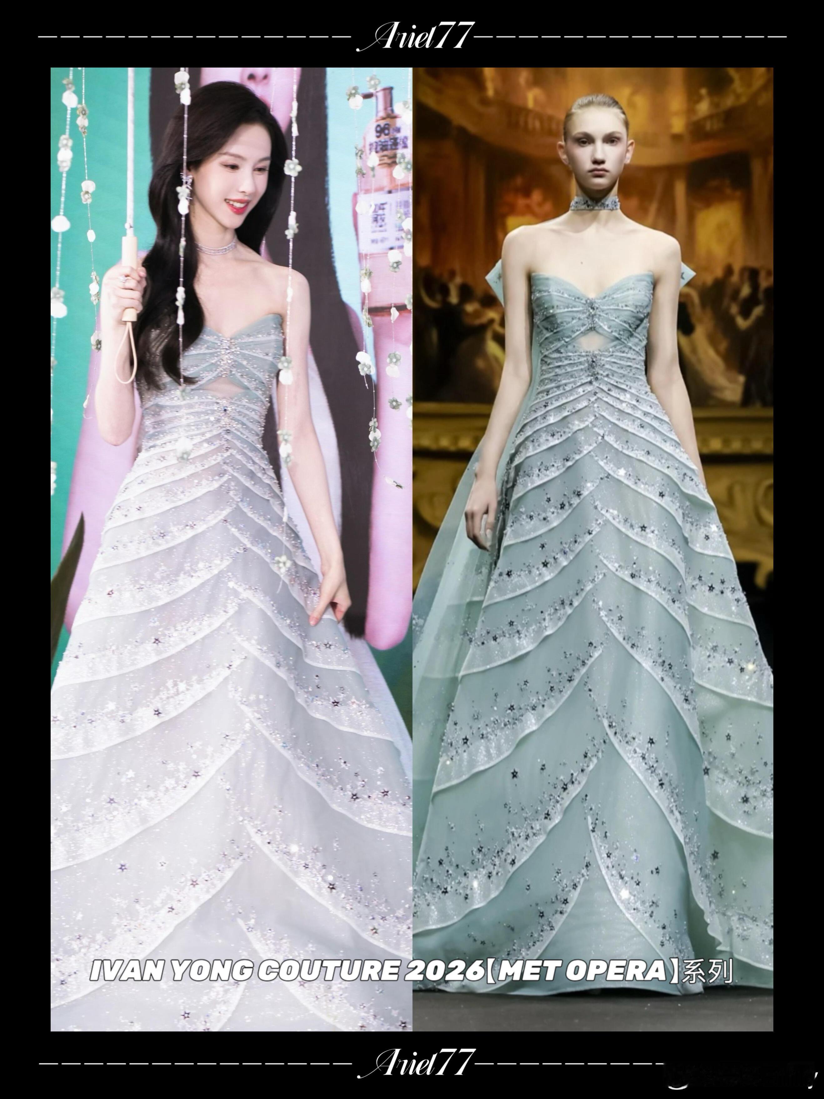 陈都灵|今日活动造型!薄荷绿裙好仙女陈都灵|今日活动造型身着一袭IVAN YONG COUTURE2026【MET OPERA】系列薄荷绿亮片层叠礼服搭配微卷长发造型,灵动优雅好仙气~
