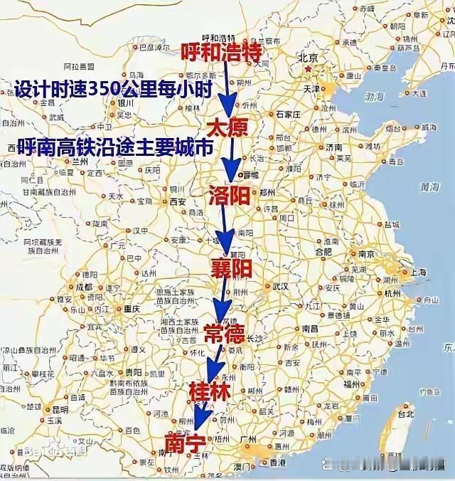 呼南高铁竟没走长沙?!呼南高铁2016年被提出,是“八纵八横”里的“八纵”之一,全长约2300公里,设计时速350千米/小时。它自北向南贯穿六个省区到南宁,湖南段经过常德、益阳等地,却没走长沙。 这其实有其合理性。长沙已有“京广高铁”“沪昆高铁”“渝长厦铁路”三条高铁大动脉,呼南高铁再经过只是锦上添花。而常德等湘西北地区,在普铁时代被边缘化,呼南高铁能雪中送炭。而且河南段已绕道郑州,若湖南段再硬拉到长沙,会与京广高铁大量重叠,既占资源又限制呼南高铁潜力。