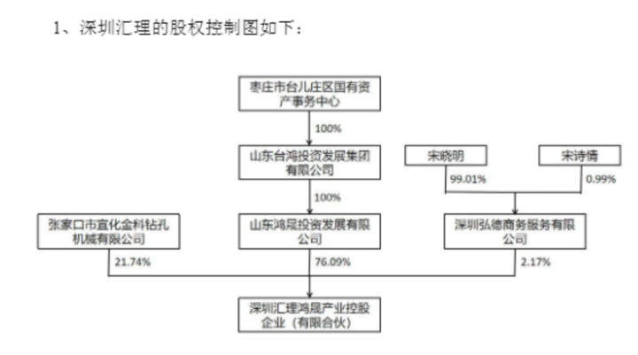 值得注意的是,本次收购方深圳汇理的第三大股东是深圳弘德商务服务有限公司,也就是深圳汇理的执行事务合伙人。天眼查显示,深圳弘德商务服务有限公司的股东分别是宋晓明和宋诗情。