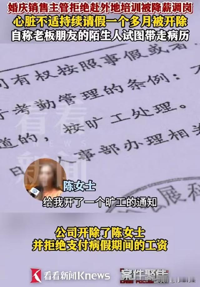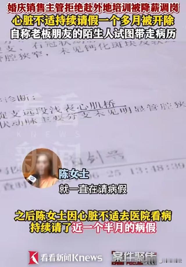 上海,陈女士在某婚庆公司上班,因拒绝公司安排去外地培训,竟被降薪调岗,之后因心脏