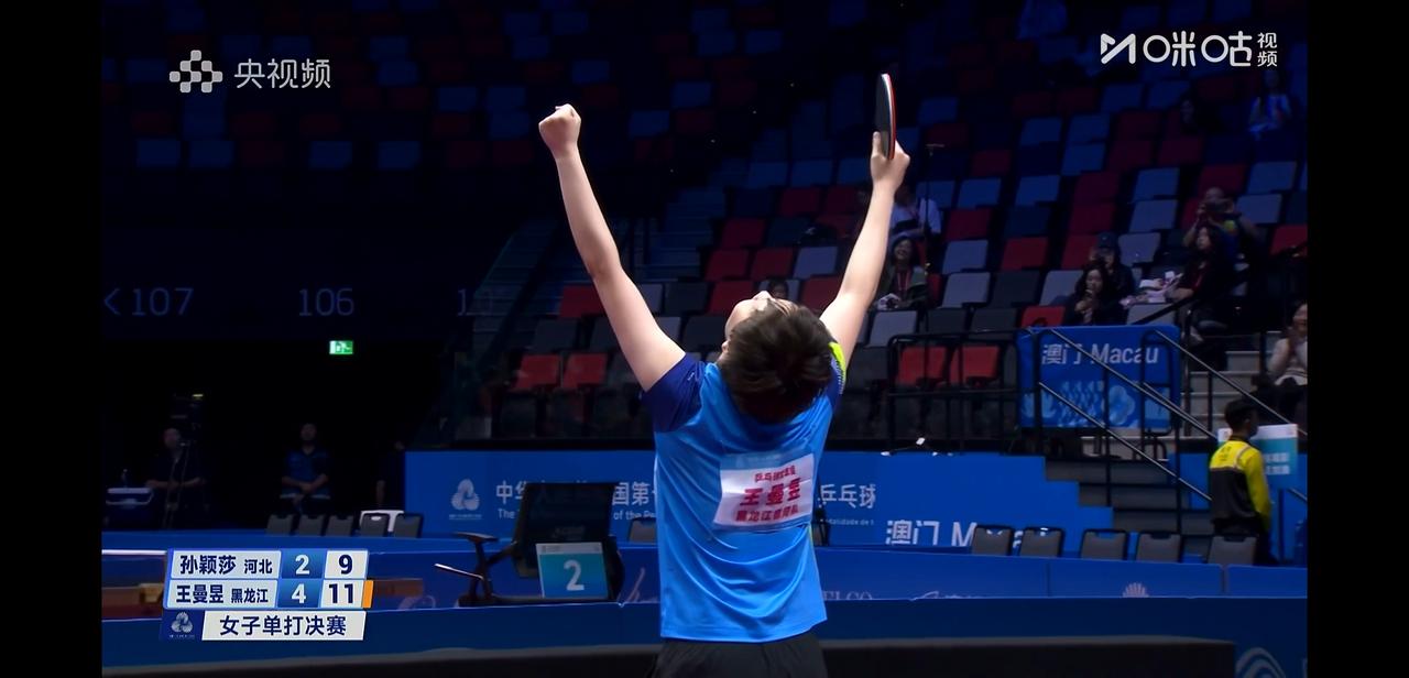 太戏剧性! 精彩!太精彩!我的预测是正确,王曼昱4:2战胜孙颖夺冠,并且是卫冕冠军! 第一局孙颖莎第一局拿下,没想到王曼昱突然发力,连追三局,3:1领先。 第四局,大激烈,第五局反复争夺,连续打到第14平,孙颖莎艰难拿下。 最想不到是第六局,孙颖莎大比分8:3领先,我以为孙颖莎可能要夺冠,实在没想到王曼昱突然又发威追平比分,并且反超,最后王曼昱大逆转,拿下这一局,反而4:2夺得冠军。 恭喜王曼昱夺冠! 王曼昱 王曼昱挑战赛