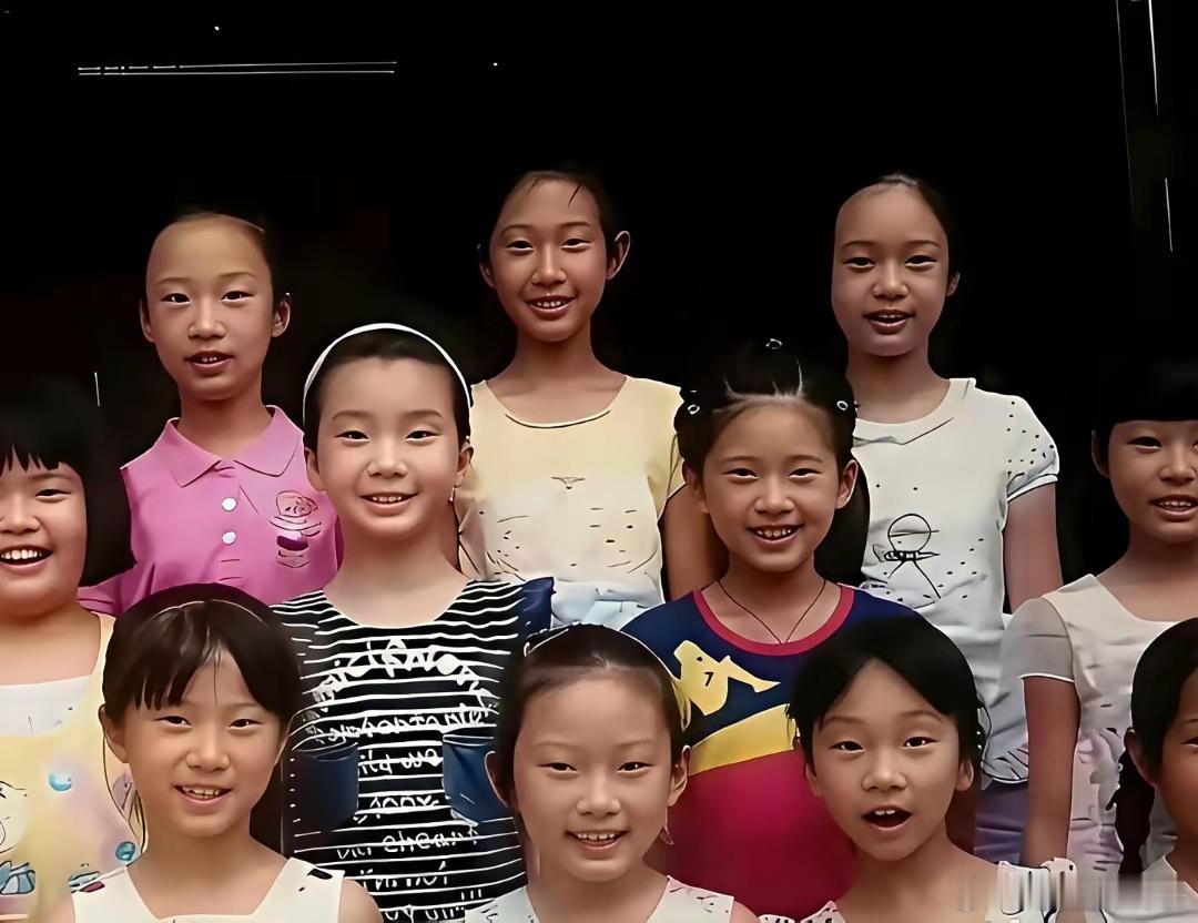 这是赵露思小时候的班级合影,中间那个脸型最好看的就是她,她是原生脸,学生时代就在QQ空间火了。