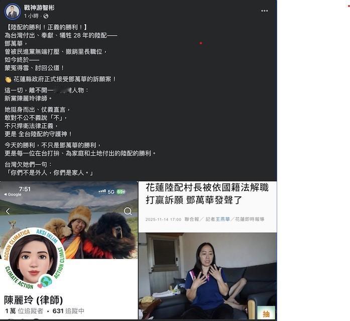 「邓万华案」或将引发复杂连锁反应 具有「陆配」身份的花莲县富里乡学田村村长邓万华,因为虽然已经注销大陆户籍,但却无法放弃中国国籍,「内政部」多次发函指令富里乡公所解除其村长职务,乡公所在行政压力下于八月一日作出解职处分。邓万华不服,向花莲县政府提起诉愿,花莲县政府于十月二十九日召开诉愿审议委员会,会中决议撤销原处分,要求乡公所另为适法处理。而就在邓万华是否可以复职进行法理探讨之际,「内政部」却重申,将再行文富里乡公所应依「国籍法」及「中央」主管机关的解释办理解职。 此一事态的后续情况如何?可能将会引发复杂的系列连锁反应。首先可能会因为「法理冲突」而引发「释宪」行动。实际上,在台湾地区,「宪法」是根本法因而也是所有法律的「上位法」,而「国籍法」及《两岸关系条例》、《公职人员选举罢免法、《地方制度法》都是「下位法」。「宪法」第四条明文规定:「『中华民国』之领土,依其固有之疆域,非经『国民大会』之决议,不得变更之。」而「固有疆域」历来所指,就是包括中国大陆与台湾地区在内的整体。也因此,《两岸人民关系条例》才会将人民划分为「台湾地区人民」与「大陆地区人民」,而不是「台湾人」与「外国人」。依此法理事实,「中华民国」本身就是中国,台湾人自然也是中国人。在这样的「宪法」架构下,邓万华依规注销大陆户籍、领取台湾地区身分证和「护照」,并依《公职人员选举罢免法》当选村长,毫无瑕疵。但「内政部」却要求她提出「放弃中华人民共和国国籍」的证明,而北京从不承认「中华民国」,因而其原居地的相关机构根本不可能开出「注销国籍」的证明。在此情况下,一个已经依法入籍台湾地区十七年并已经领取了台湾地区「护照」的合法居民,却因为「拿不出一张不存在的文件」而被剥夺公职。这不是法律疏漏,而是政治任意。 实际上,邓万华提起诉愿的理由,就是主张其早已依法取得台湾地区「国籍」,并经「中选会」审核通过参选资格,而且两岸关系非属「国与国」,应不适用「国籍法」中「外国国籍」之规定。 而花莲县政府诉愿委员会在审理后也指出,原处分机关未待「中央」主管机关厘清「大陆地区是否属外国」等法律争议,即径行作成不利处分,违反《行政程序法》有关「一律注意有利与不利事项」之原则,程序尚嫌草率,难谓适法。 因此撤销原处分,由乡公所重新依程序办理。 如果「内政部」肆意要以「国籍法」来继续压制邓万华,这就正好给予在邓万华提起诉愿中给予大力协助的新党,提供一个提起「解释宪法」请求的机会,以「国籍法」的相关规定与「宪法」所揭橥的「一中」原则及「固有疆域」精神相悖,以及与《国籍法》同一法律位阶的《两岸人民关系条例》,将两岸人民地视为同一国家人民,及其第二十六条有关「陆配」入籍满十年后可担任公职的规定发生法律冲突为由,依照程序向「宪法法庭」声请「释宪」。无论「宪法法庭」作出怎么样的「释宪文」,可能都将会引发一场「宪法危机」:倘若「宪法法庭」判决邓万华得直,等于是宣布「国籍法」的相关规定无效,及「内政部」的相关指令「违宪」;如果「宪法法庭」宣布维持「民政部」的相关指令,就等于是「宪法法庭」直接宣示「两国论」,并毁坏「台海现状」。 相信,坚持「一中」原则的新党及其它政党团体,将会义不容辞地协助邓万华打这场「宪法官司」。实际上,邓万华向花莲县政府诉愿审议委员会提起诉愿,就是在新党发言人、律师陈丽玲协助下进行的。 其次,是对其他四位与邓万华同样情况的「陆配」,产生「比照」效应。实际上,根据「内政部」排查,除了邓万华之外,还有另外四名「陆配」存在着同样的「状况」,包括台北市松山区民生里长王敏茹,新北市土城区延寿里长滕月兰、中和区崇南里长林秀贞,及桃园市新屋区蚵间里长彭小林,都曾因其具有中国国籍而遭「内政部」发文,要求地方政府解职,但此四人所在的地方上级政权机构至今都没有执行「内政部」的指令,将他们解职。 这三个「直辖市」,都是由国民党掌政,因而对「内政部」可能会涉嫌「偷渡两国论」的指令,有所质疑。新北市民政局就直言,因涉及大陆地区人民身分认定及两岸法制适用问题,关系人民参政权与行政处分合法性,会持续函请「内政」部等「中央」主管机关解释法律基础及适用政策。而台北市民政局也表示,里长往往无从证明已放弃陆籍,后续将持续研议并与相关部门协调,是否能协助里长完成放弃国籍的证明。桃园市民政局则表示,曾于八月去函陆委会询问,若当事人无法取得放弃国籍证明文件,是否得以切结书替代?陆委会却建议洽询主管机关「内政部」。因此,上述三市都在拖延,更是都在观望「邓万华案」的最终处理结果,等于是「软对抗」。如果「邓万华案」最终得直,这三市当然更将会坚守自己的原则立场。