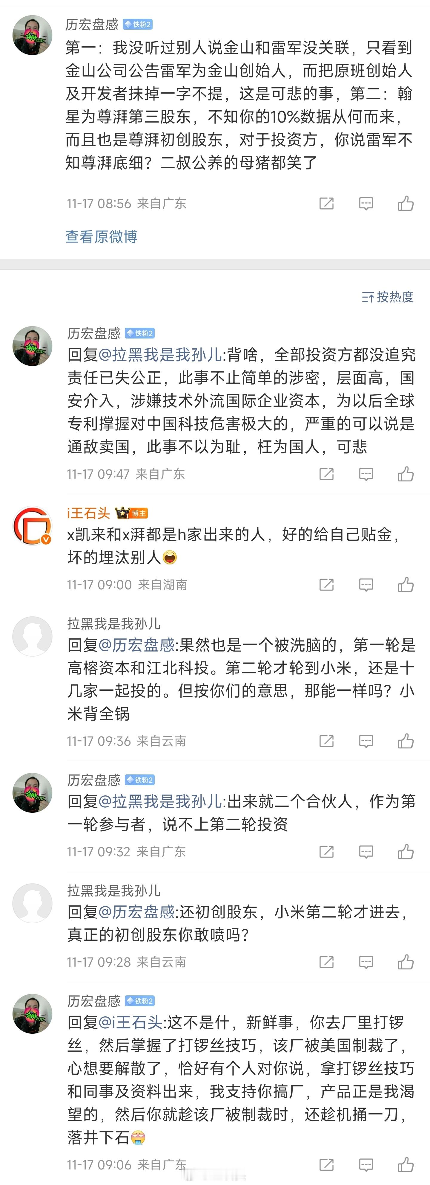 “x湃出来就二个合伙人,瀚星作为第一轮参与者,说不上第二轮投资”。瀚星第一轮参投x湃,这就是你们歪曲抹黑、强行扣帽子的手法?比瀚星更早进场的GZ,你们不打算给他们按个啥罪名吗?哦,你们是不是又要说高榕资本投过粮厂,算了你们可能都不知道图中哪个是高榕资本。高榕资本还投资了睿芯微,如果你不知道睿芯微,你就搜一下哈勃投资。算了,说多了也没用,恐怕你也不知道怎么查。