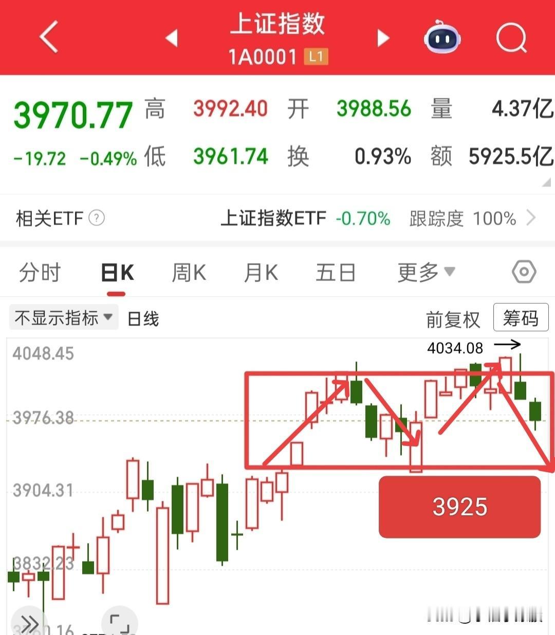 一些朋友又说牛不在了,心态被磨炸裂了,大盘真的走坏了吗? 最近的行情并不差,如果还在亏钱,那么大概率就是持有的就是与指数相关的方向,或者那些受大盘影响的弱势股! 弱势股没人气,不论它在哪个板块,都会被大盘带动,不会走出逆指数的走势的,这么看大盘还是要给大家分析一下的! 你看目前的大盘,已经形成一个M顶了,所以如果亏了,就不能着急补,一补就是半山腰! 要等待大盘回踩下方支撑位才能去补,下方支撑在3925点附近,在那里就会出现反弹了!