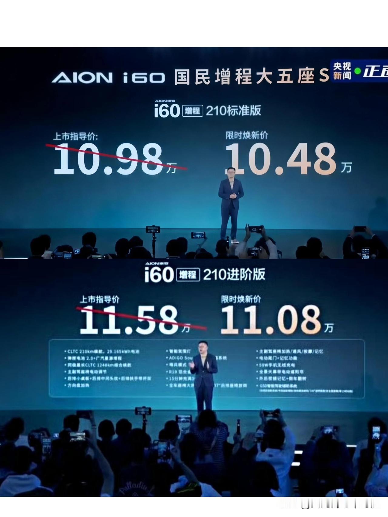 埃安营销部扣工资吧,什么叫“弹匣电地”?开个玩笑。 广汽埃安这次是找对路了,i60的上市算是彻底摆脱了网约车的形象。 首先名字就起对了,想想什么霸王龙,鹦鹉龙,名字太中二了。 然后颜值也有质的提升,堪称开了十级美颜的霸王龙。 10.48万的起售价。 埃安i60这次真是把“卷”字玩明白了!先说续航,纯电版直接干到650公里,增程版更是突破1240公里综合续航,平时通勤用纯电的210公里绰绰有余,这回连加油站小哥都要忘记你长啥样了。最贴心的是,冬季续航打折?不存在的! 安全感这块,弹匣电池2.0给你安排得明明白白。 2775mm超长轴距,后排放倒直接变身“移动大平层”,露营装备、婴儿车随便装,还自带后排小桌板,带娃党狂喜! 智能配置更是同级“天花板”级别——广汽GSD智驾辅助+高速NDA+智能泊车,新手秒变“老司机”,停车再也不用求人;ADiGO 5.0智能座舱支持连续语音对话,露营模式、咖憩模式一句话切换,再加上双手机无线充电和32色氛围灯,这氛围感,晚上在车里都不想回家!