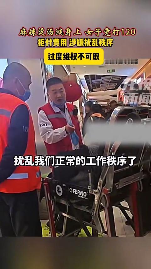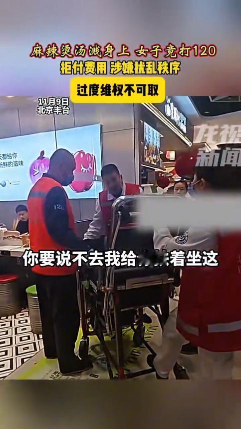 “必须严惩!”11月9日,北京,一女子吃麻辣烫时,被隔壁桌的男顾客溅了一滴汤,女子当场情绪失控,和对方争吵起来,男顾客走后女子报了警,随后还叫了120,可医生赶来后,她却表示自己没钱,赖在担架上不肯下来!网友:算不算寻衅滋事? 一滴滚烫的麻辣烫汤汁,按理说顶多让人嘶一声、擦擦裤子就完事了。 但 11 月 9 日在北京一家小吃店里,这一滴汤居然像被放大镜照了十倍,硬是折腾出一套“动用公共资源”的连锁反应,把警察和急救系统都给牵进去。 整件事说白了,就是有人把一桩再小不过的食客矛盾,硬生生拧成了一场社会公共事件,它不是稀奇古怪的八卦,而像一节“怎么把个人情绪升级为公共麻烦”的示范课。 事情最初平淡得不能再平淡,女顾客吃着饭,隔壁桌男顾客一个不小心,汤汁溅了她一身,正常人遇到这种事,要么骂两句要么让对方道个歉,再不济让人赔一条纸巾也就过去了。 但那天偏偏两边都不愿意消停,女的情绪一下子就炸了,要求对方道歉、赔偿,男的呢,也不想惯着她,觉得没多大事,嘴上烦躁,态度也一般般,讲不了两句就甩脸走了。 照普通人的做法,这时候最多心里骂一句“倒霉”,回家换身衣服就算了,可这位女士显然没打算认亏,她直接跳过“继续沟通”这一步,干脆拿起手机报警了。 电话一拨,故事的走向瞬间变了:俩人的小摩擦被“升级”为需要警察到场处理的纠纷,她借用了第一根杠杆,执法力量。 等警察赶到,本以为是来调解赔偿问题的,可她一开口就变招了,不再提钱不钱,直接说自己“感觉不舒服”。 这招高,就高在“身体不舒服”这种理由没有人能反驳,警察也不是医生,现场判断不了真假,只能按流程处理。 于是警察被迫成了她撬动更大资源的“中转站”,按照规定帮她叫了 120,救护车一来,警察任务完成,转身离场。 然后就是这出戏的高潮了,医护人员抬着担架来了,本以为遇到急症,结果女顾客一边躺上去,一边又冒出一句:“我要去看病,但是我没钱”。 旁边有人甚至听到她说,最好送到“最好的医院”,这一下把医护人员整懵了:你既说自己不舒服,又不愿承担费用,还要求标准最高? 急救系统是干嘛的?抢时间、救命的,救护车收费,就是为了防止有人随随便便用它当免费出租车。 但这位女士巧就巧在利用主观感受无法证伪的漏洞,让所有人都没法把事拉回正常轨道,僵在那儿也不是办法。 医护人员反复沟通无果,只能亮明态度:你这样已经影响正常秩序了,再折腾我们会按规定处理,给你五分钟自己决定。 听到这话,她终于意识到事情不是她能随便控制的,自己下了担架,也没再提去医院,这场由“一滴汤”引发的闹剧被拍下来传到网上后,瞬间炸锅。 网友们几乎清一色骂她这是公然浪费公共资源,甚至有人开始讨论会不会涉及“寻衅滋事”,大家最担心的是:要是有人效仿,以后谁敢保证真正有危险的人能抢到急救车位? 也有人小声提醒:她可能真有经济压力,但即便如此,也有正规的求助方式,比如社区、社工、公益组织,而不是绑架整个城市的应急系统。 说到底,这件事反映的不是“汤有多烫”,而是公共资源在面对“看上去合规、实际耍赖”的情况时,显得格外脆弱。 制度是制度,但人的恶意钻空子,很容易把系统玩得团团转。 这不仅是对当事人品质的拷问,也是对整个社会规则意识的一次提醒:公共资源不是情绪宣泄的工具,想让社会运转得顺畅,靠的不是谁的嗓门大,而是每个人心里那条该守住的底线。