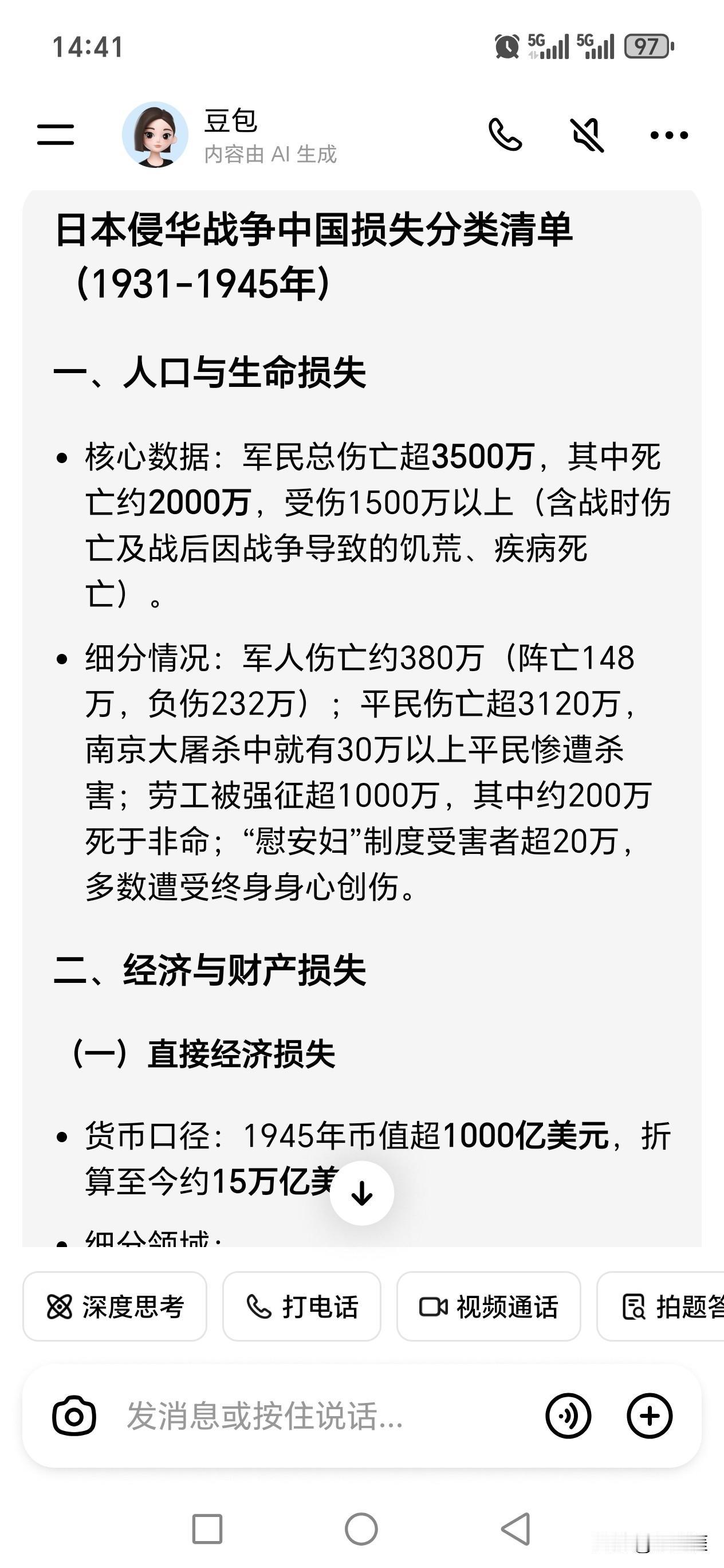 日本侵华战争期间(1931-1945年)对我国造成的严重损失汇总。 这些损失主要集中在三大方面: 人口和生命损失 经济和财产损失 文化和社会损失 这就是日本人对中华民族犯下的滔天罪行 我们中国人绝对不会就这么算了 对日本的全面清算很快来临!