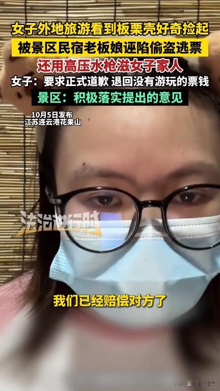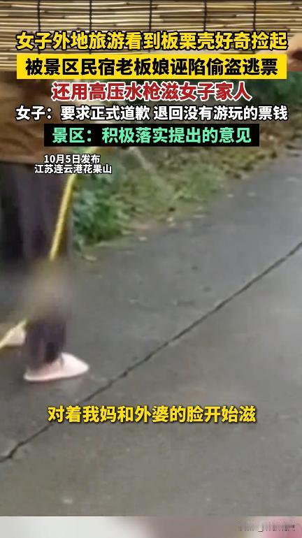 在江苏连云港花果山景区,一位游客因孩子捡拾地上的板栗壳,与当地民宿经营者发生冲突。[听歌] 经营者使用了高压水枪,并向游客索要了300元。 事后,景区管理方确认板栗树属于公共资源,游客行为不构成偷盗,款项已被退还。 这起事件之所以引发广泛关注,在于其细节与景区前期宣传明显矛盾。 就在事件发生前一周,当地文旅部门官方账号还曾发文,明确推荐游客在特定区域“捡拾落果”。 而当冲突发生后,相关方面最初称“板栗树归商户管理”,这一说法随后在舆论质疑中被修正。 目前,涉事民宿仍在营业,但其网络评分已大幅下降。 在自媒体时代,任何一个管理盲点都可能被放大,与其事后补救,不如事前厘清权责、加强培训,让商户行为与景区宣传保持同频,让游客的每一次体验都配得上他们出发时的期待。 市场自发的评价机制正在发挥作用,而更重要的则是建立制度化的监管和透明的投诉渠道。 只有当每一位游客的权益无需依靠“网络曝光”这个特殊路径也能得到保障时,旅游环境才算真正走向成熟。 这件事情一经传播,便引起了网友地热议。 “看了这个新闻真是气不打一处来!上次我去花果山也碰到过类似情况,捡了个松果就被商户追着要钱。景区是该好好管管这些欺客行为了。” “这样的老板娘简直是在给连云港抹黑。现在好了,全网都知道了,看以后谁还敢去她家住。要我说,这种商户就该直接清出景区。” “文旅局前面鼓励捡板栗,后面又不管商户乱收费,这不是自己打脸吗?好在最后退钱了,但早干嘛去了?” “作为连云港本地人,看到这新闻真的很痛心。我们欢迎全国游客,但个别商户确实影响形象。支持景区严肃整顿,还大家一个公道的旅游环境。” “那个从4.8掉到2.1的评分说明了一切!游客的眼睛是雪亮的,这种欺负人的店家迟早要被市场淘汰。” “这事儿最让人寒心的是,要不是游客拍了视频发上网,恐怕这300块钱就要不回来了。现在出门旅游,是不是都得随时准备取证了?” “其实板栗树本来就是大自然的馈赠,景区里的商户凭什么据为己有?这次处理结果还算公道,但更重要的是建立长效机制。” 为什么一个简单的板栗壳归属问题,需要等到网络发酵才能明确?为什么明文中鼓励的游览体验,会在现实中遭遇截然不同的对待?你觉得景区还应该采取哪些具体措施,才能避免类似“板栗门”事件再次发生?欢迎在评论区分享你的建议! 信息源:红星新闻